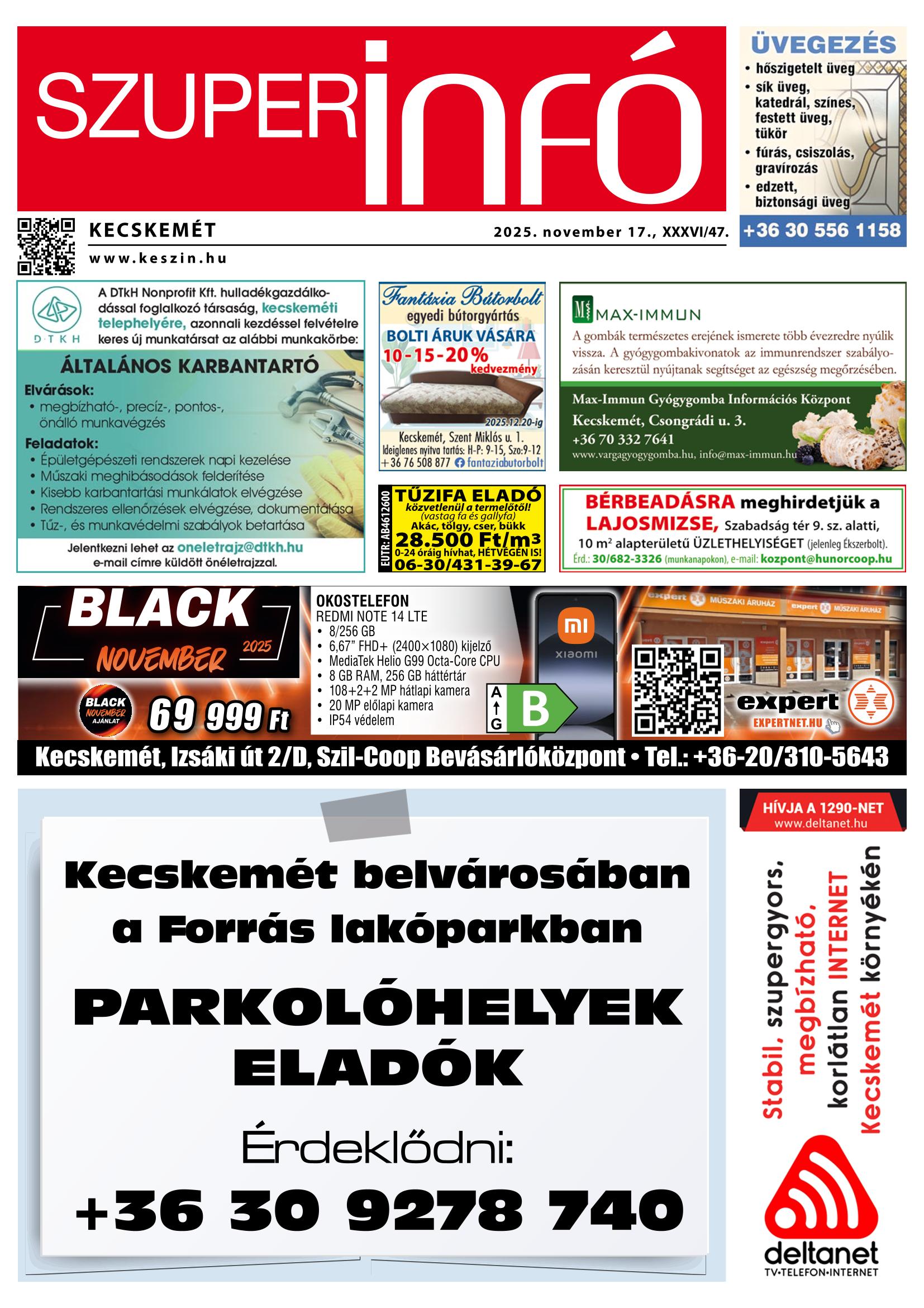 A SZUPERINFÓ online változatát már a hagyományos lap terjesztése előtt olvashatja telefonján vagy számítógépén!