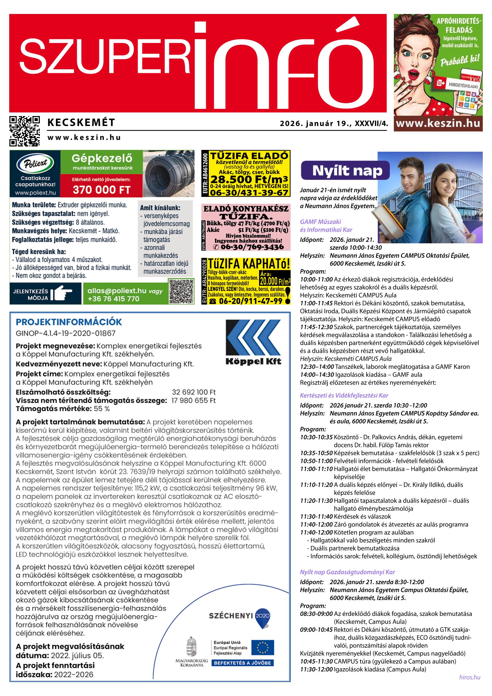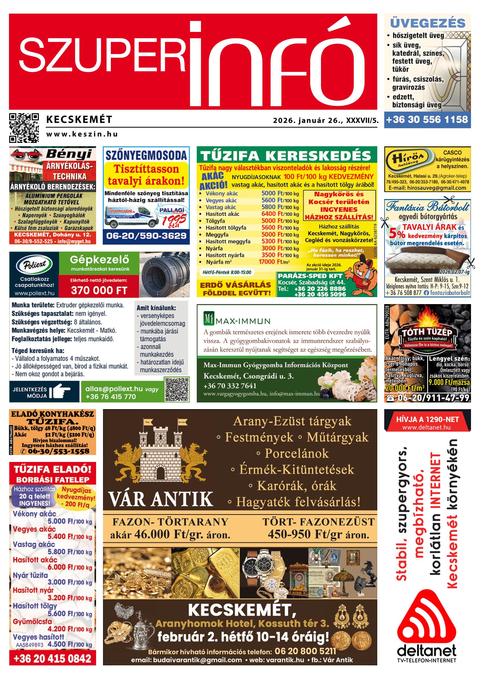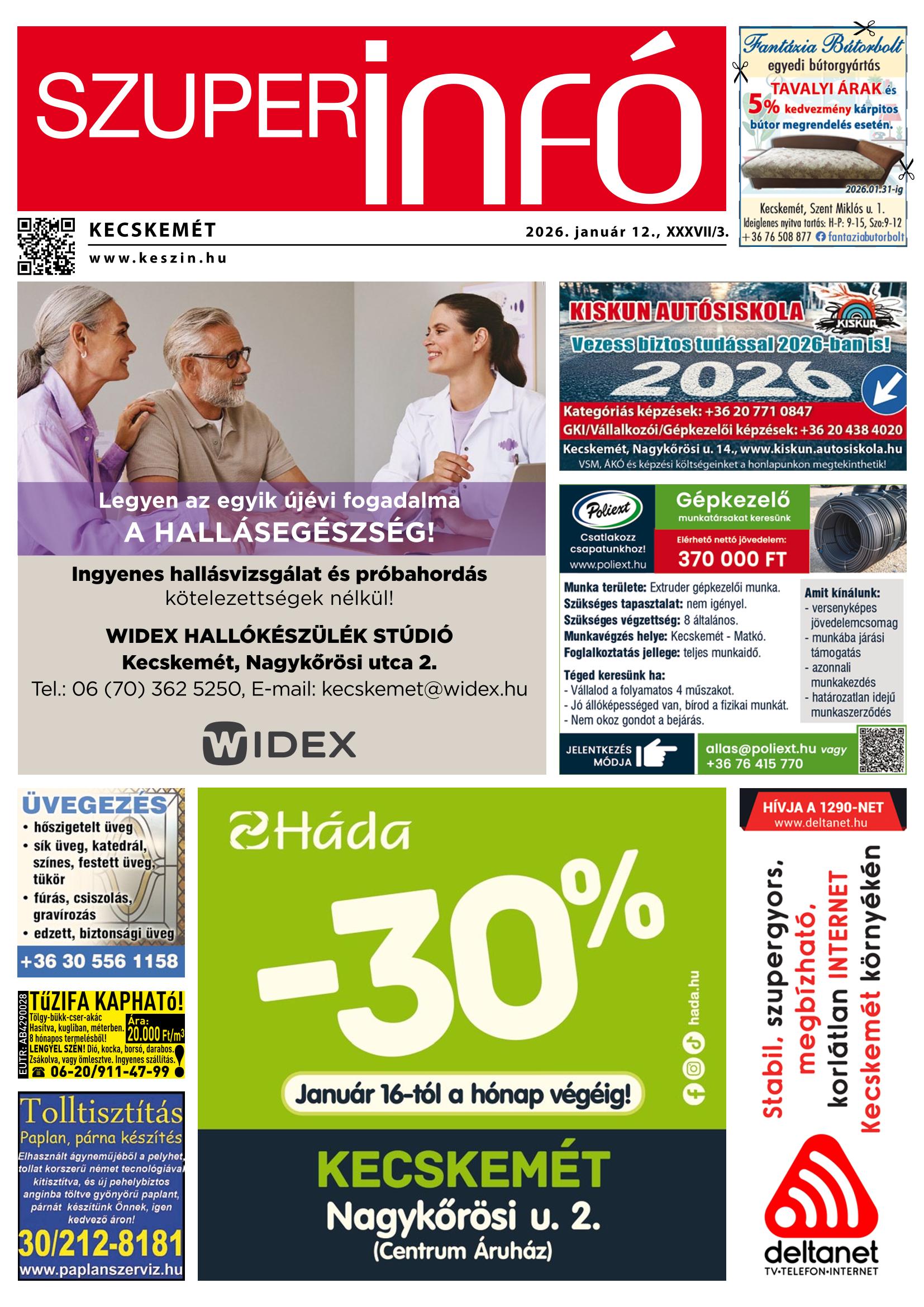 A SZUPERINFÓ online változatát már a hagyományos lap terjesztése előtt olvashatja telefonján vagy számítógépén!
