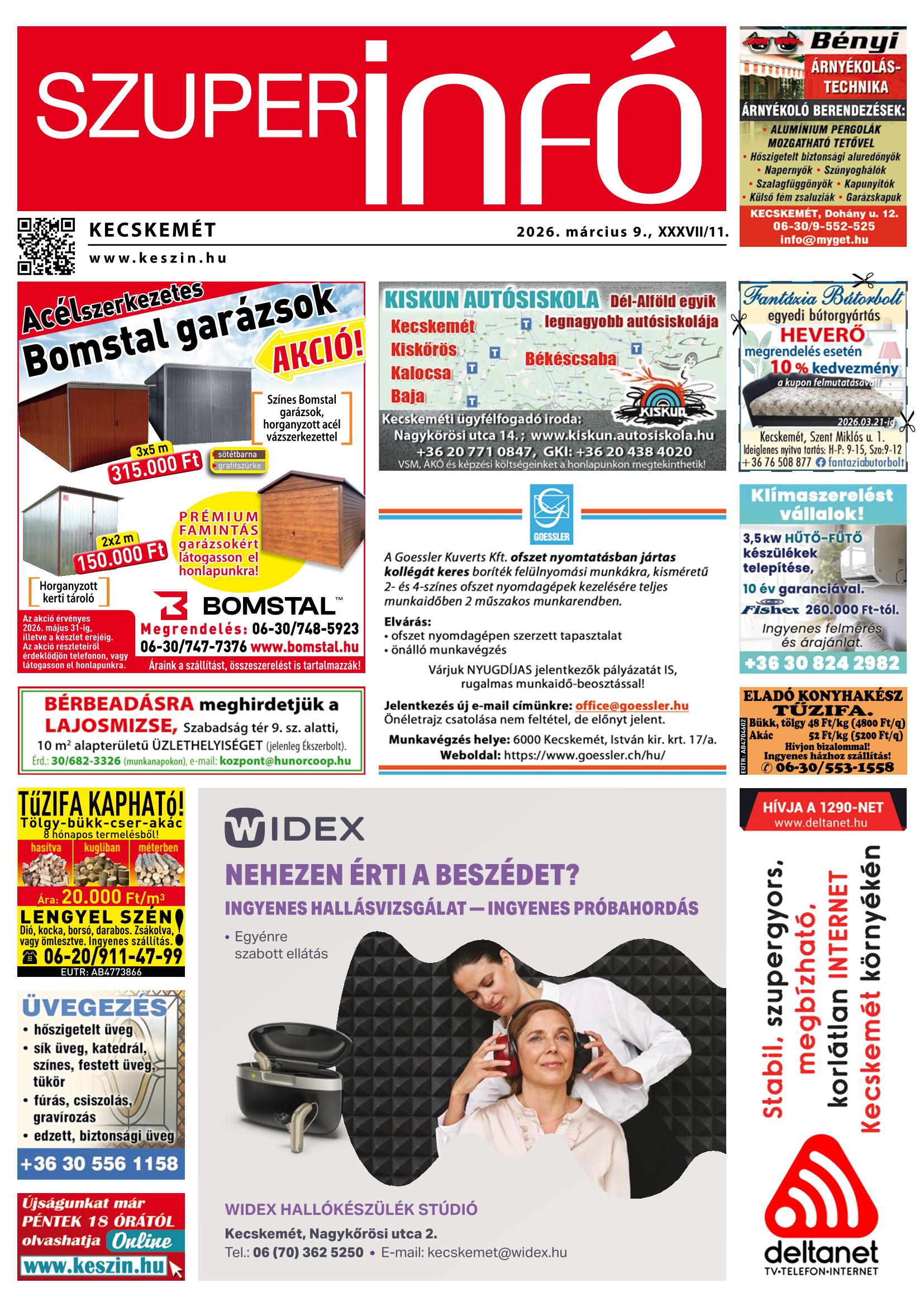 A SZUPERINFÓ online változatát már a hagyományos lap terjesztése előtt olvashatja telefonján vagy számítógépén!