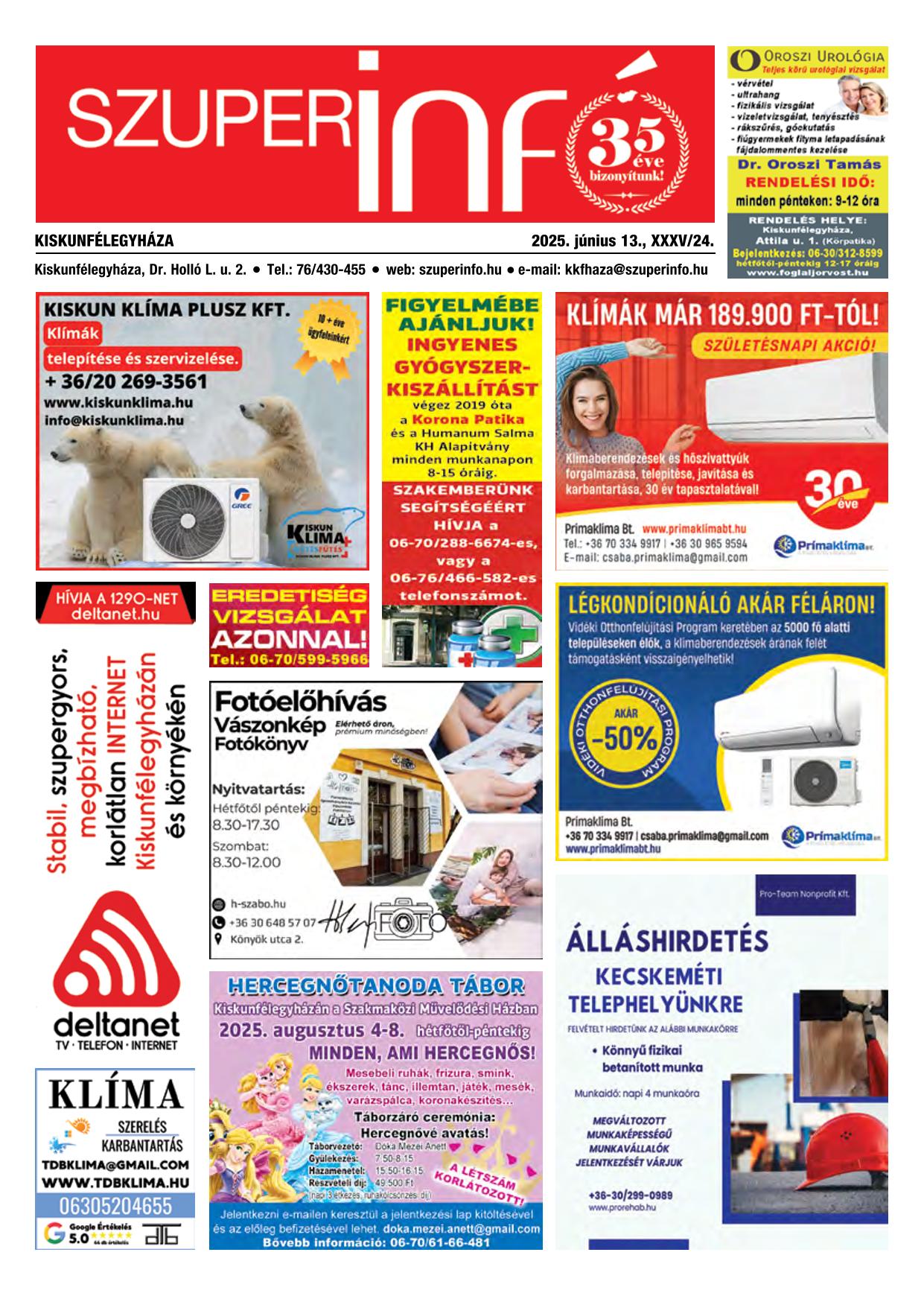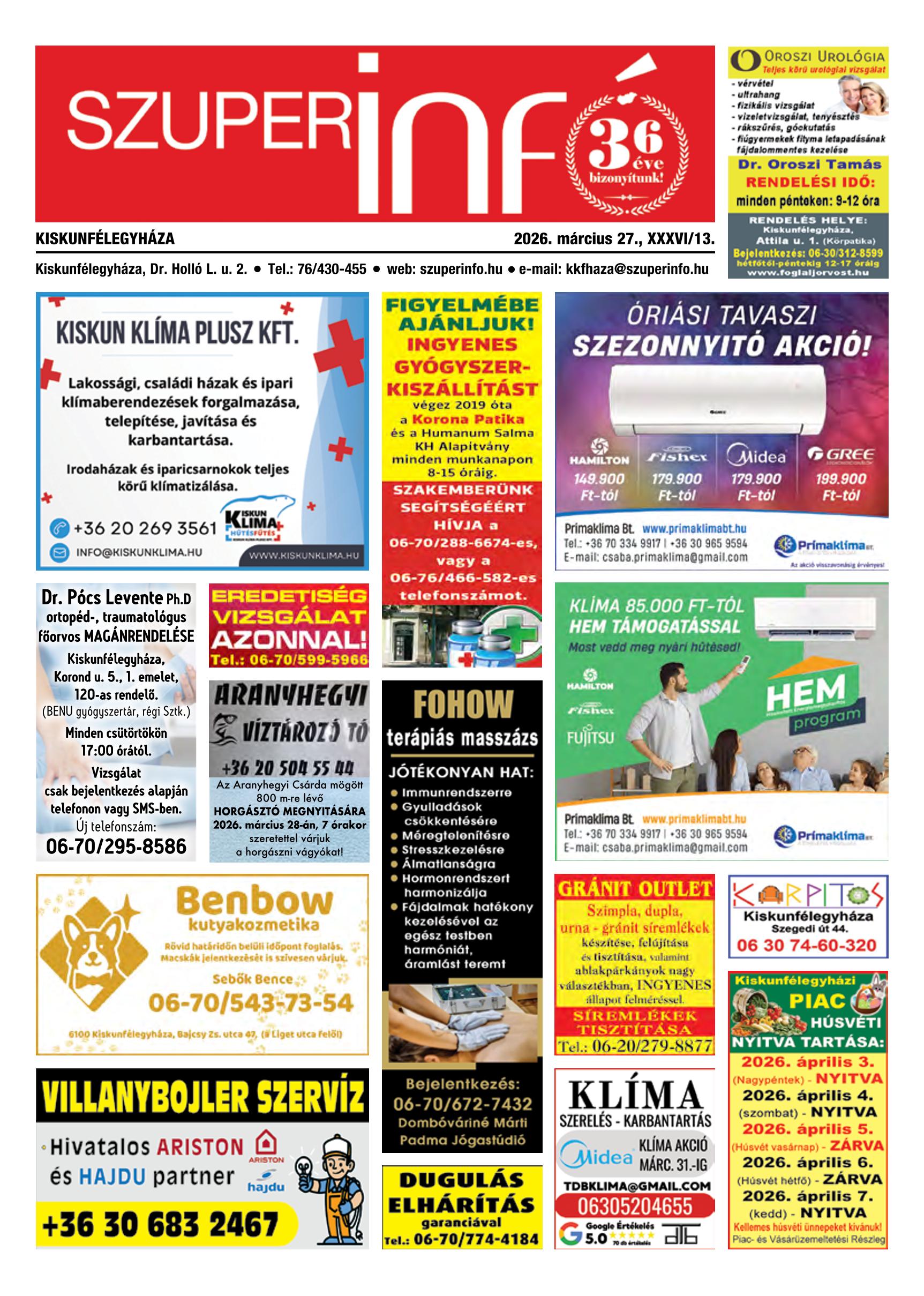 A SZUPERINFÓ online változatát már a hagyományos lap terjesztése előtt olvashatja telefonján vagy számítógépén!