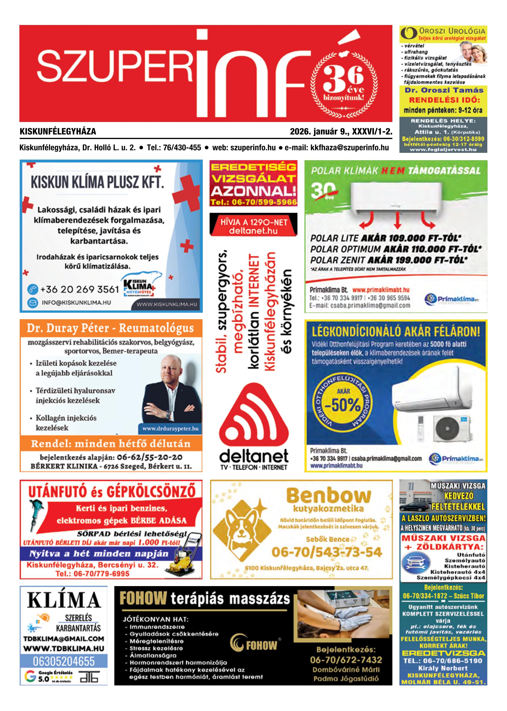 A SZUPERINFÓ online változatát már a hagyományos lap terjesztése előtt olvashatja telefonján vagy számítógépén!