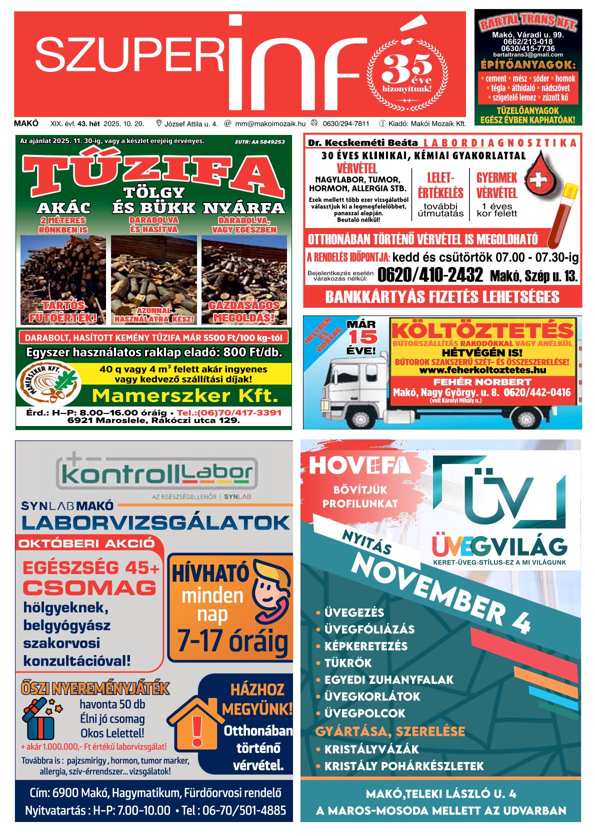 A SZUPERINFÓ online változatát már a hagyományos lap terjesztése előtt olvashatja telefonján vagy számítógépén!