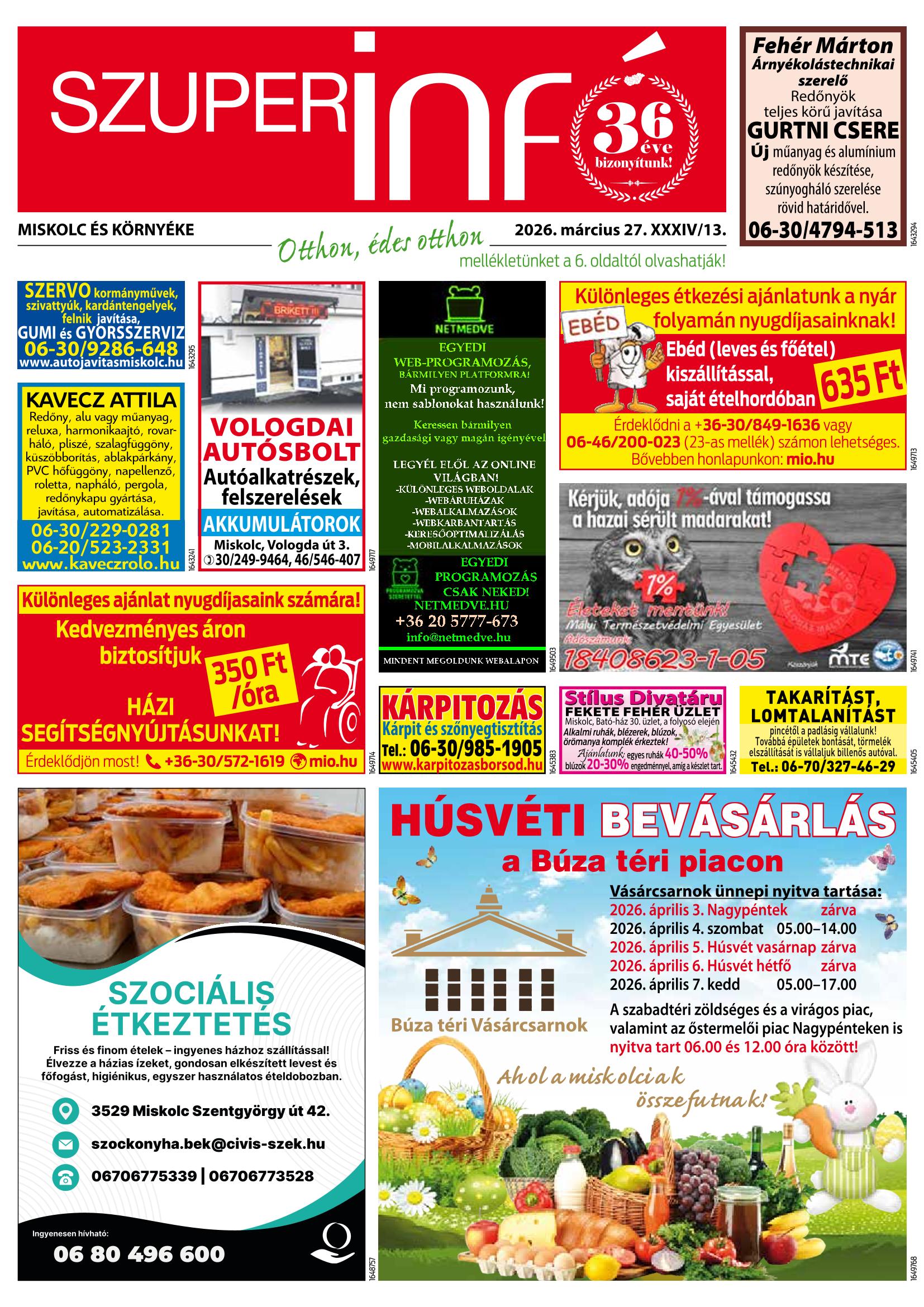 A SZUPERINFÓ online változatát már a hagyományos lap terjesztése előtt olvashatja telefonján vagy számítógépén!