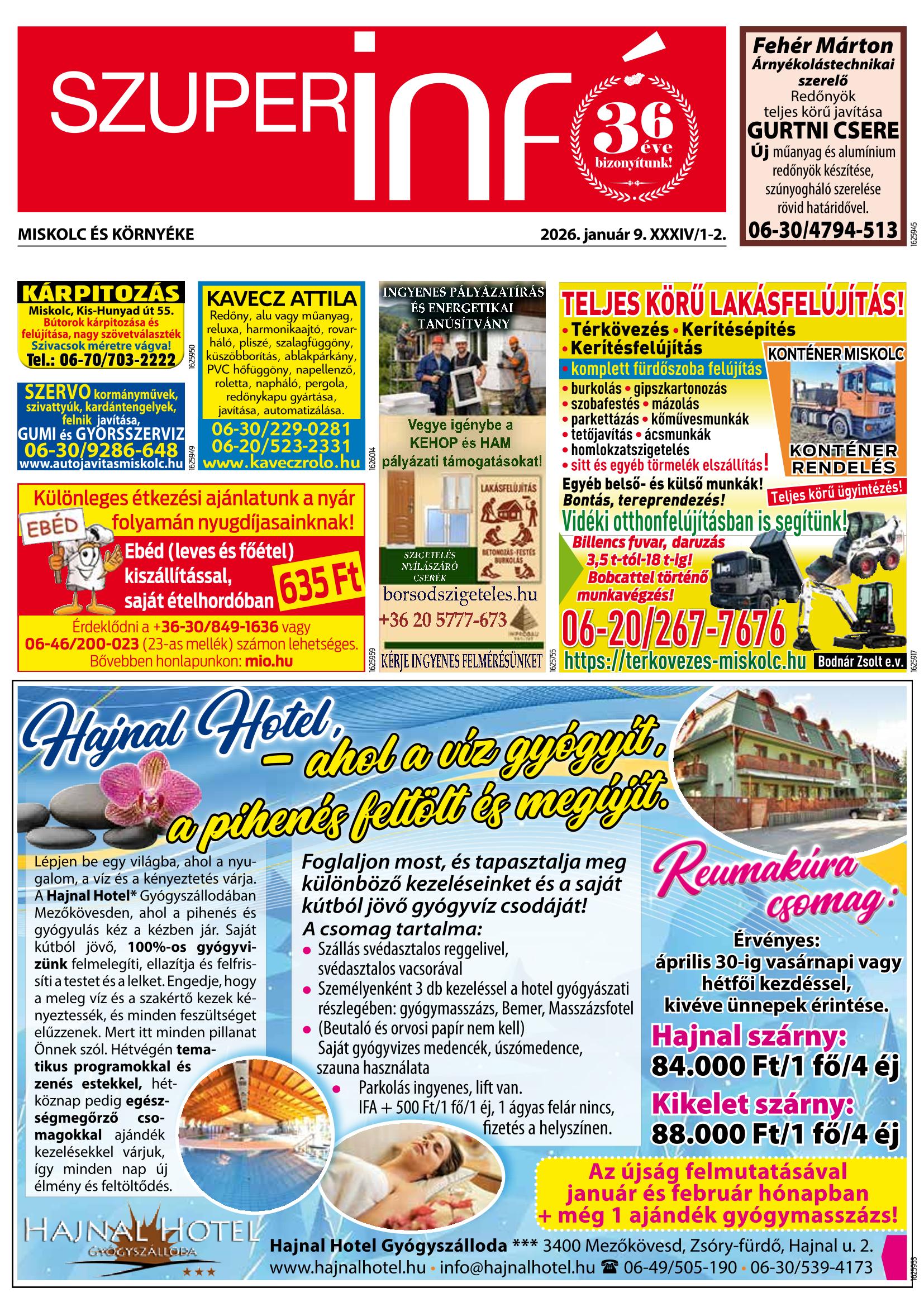 A SZUPERINFÓ online változatát már a hagyományos lap terjesztése előtt olvashatja telefonján vagy számítógépén!