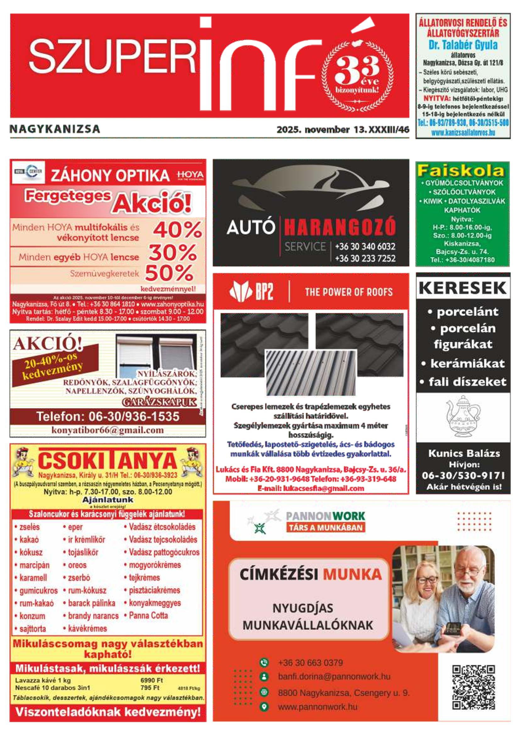 Iratkozzon fel, és megküldjük Önnek a FRISS SZUPERINFÓ újságot!