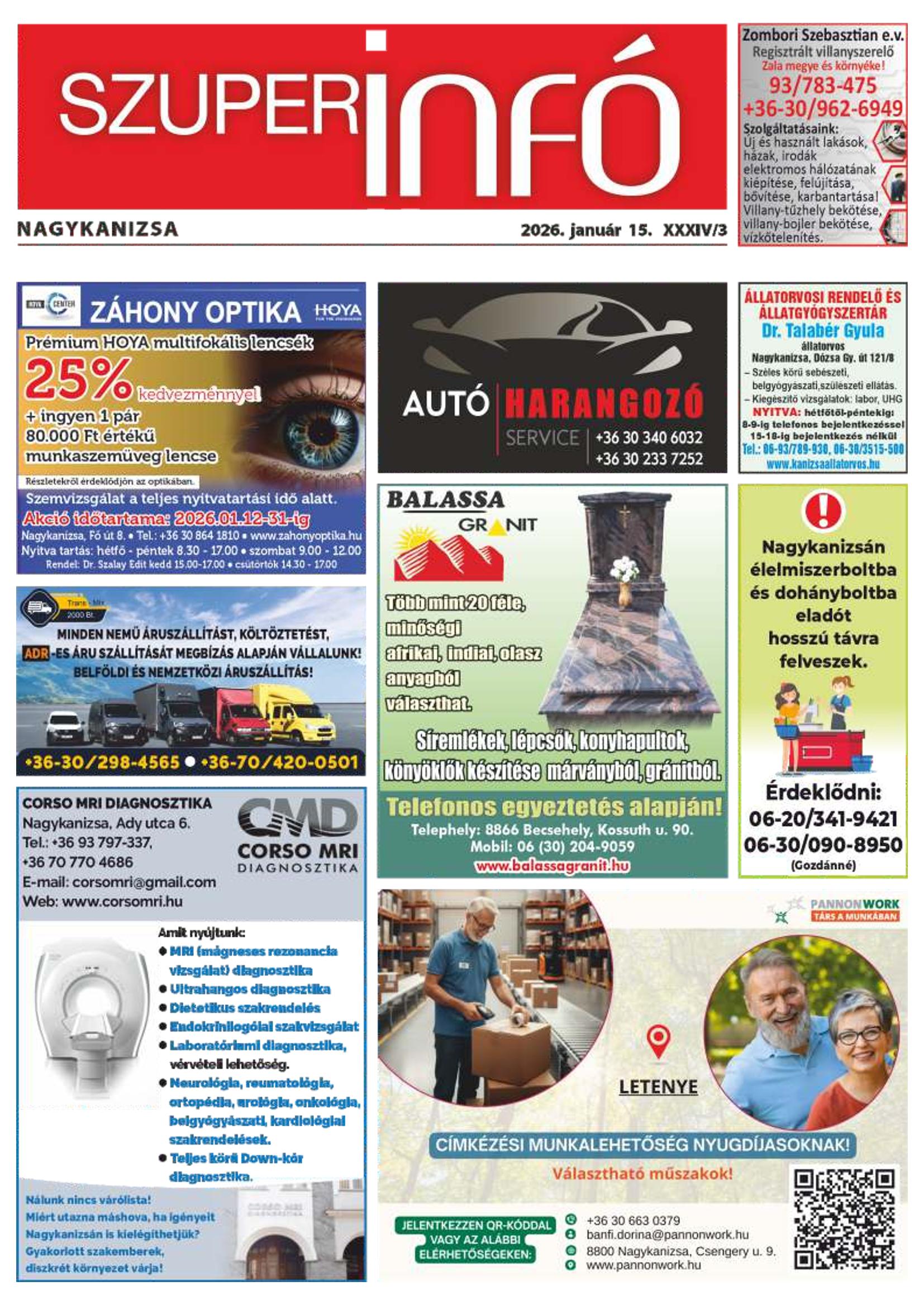 Nagykanizsa Szuperinfó szerkesztőség elérhetőségei