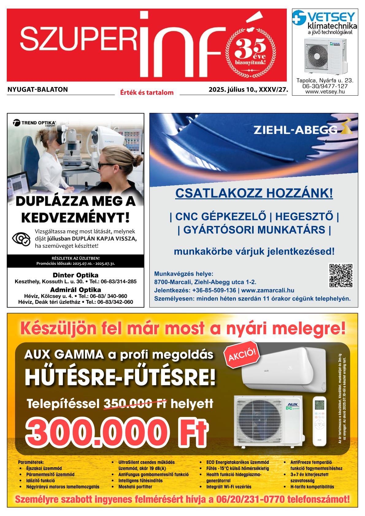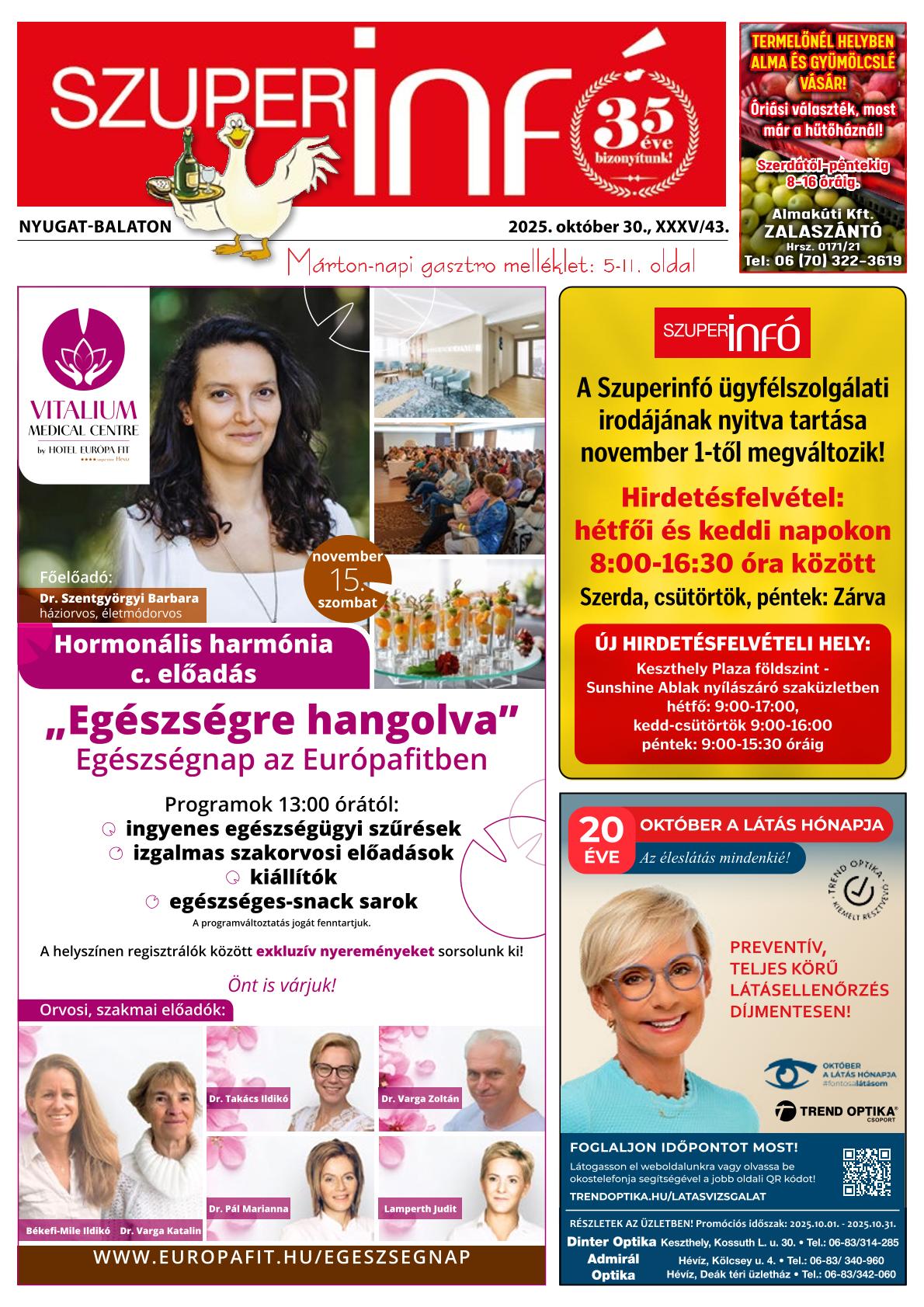 Iratkozzon fel, és megküldjük Önnek a FRISS SZUPERINFÓ újságot!