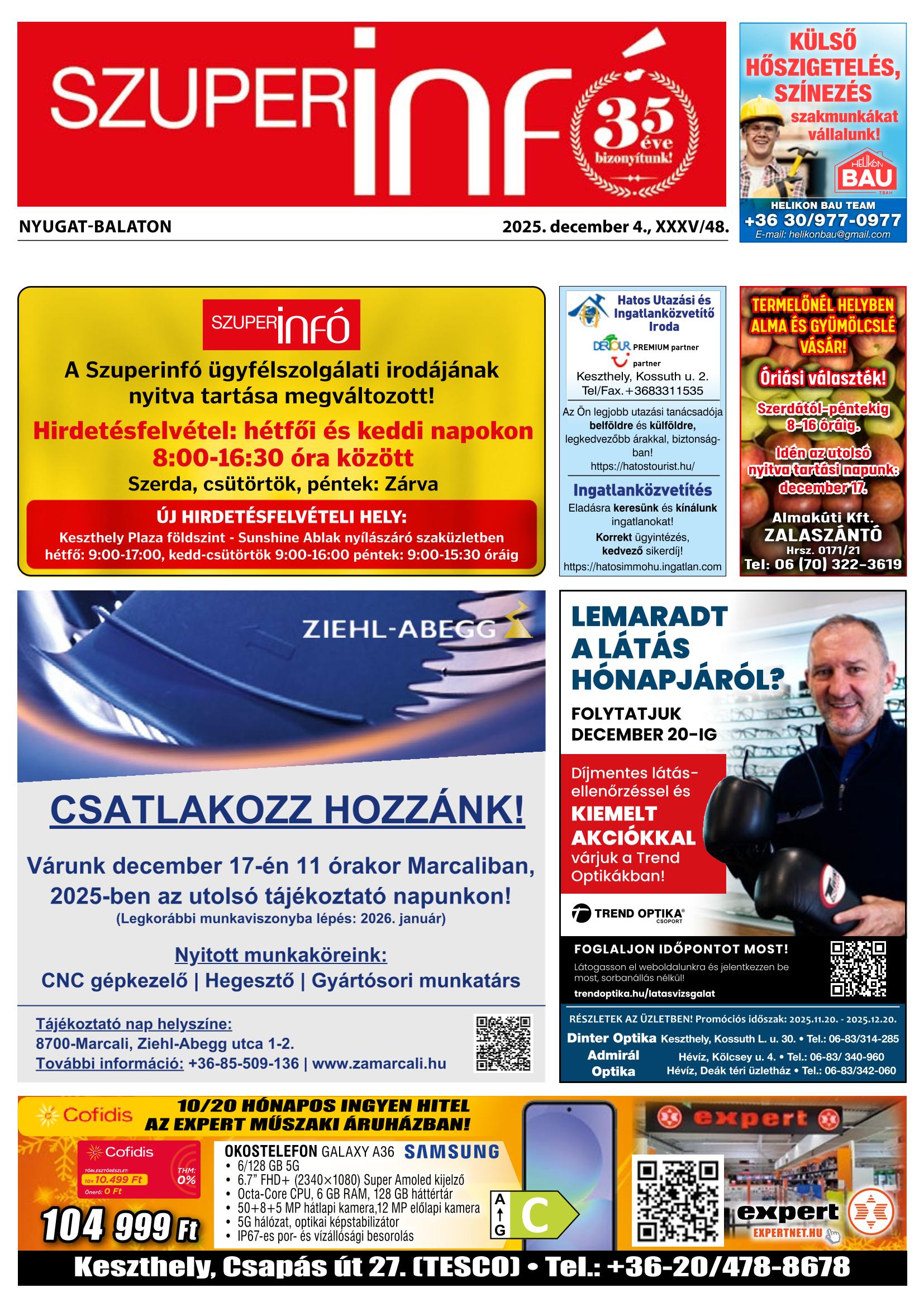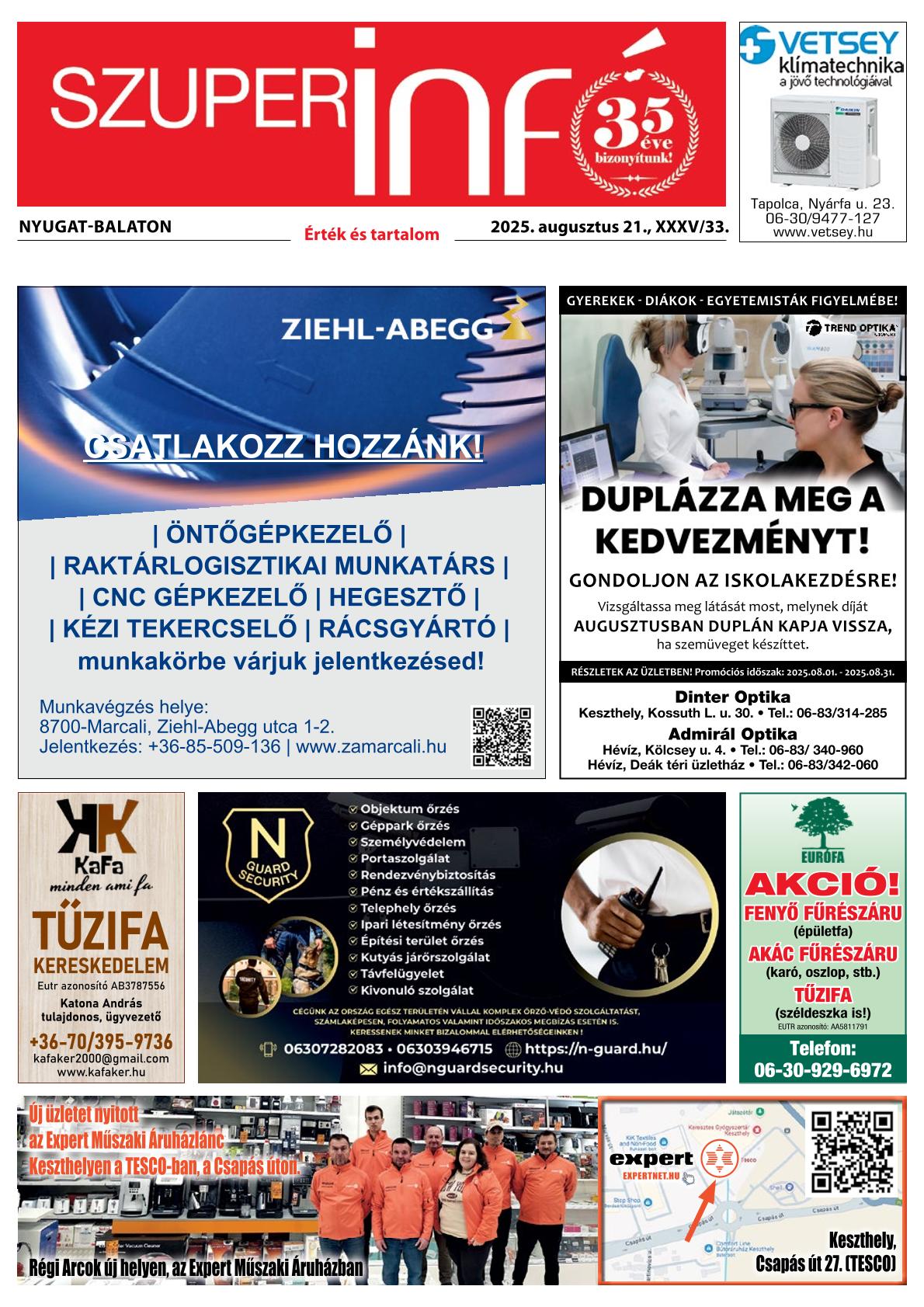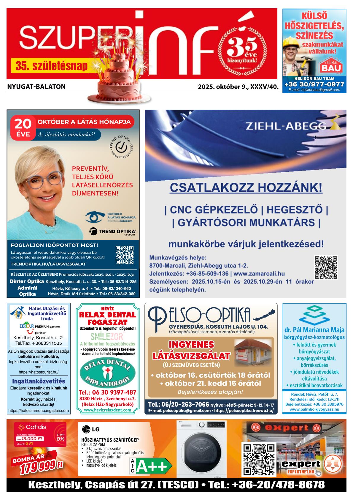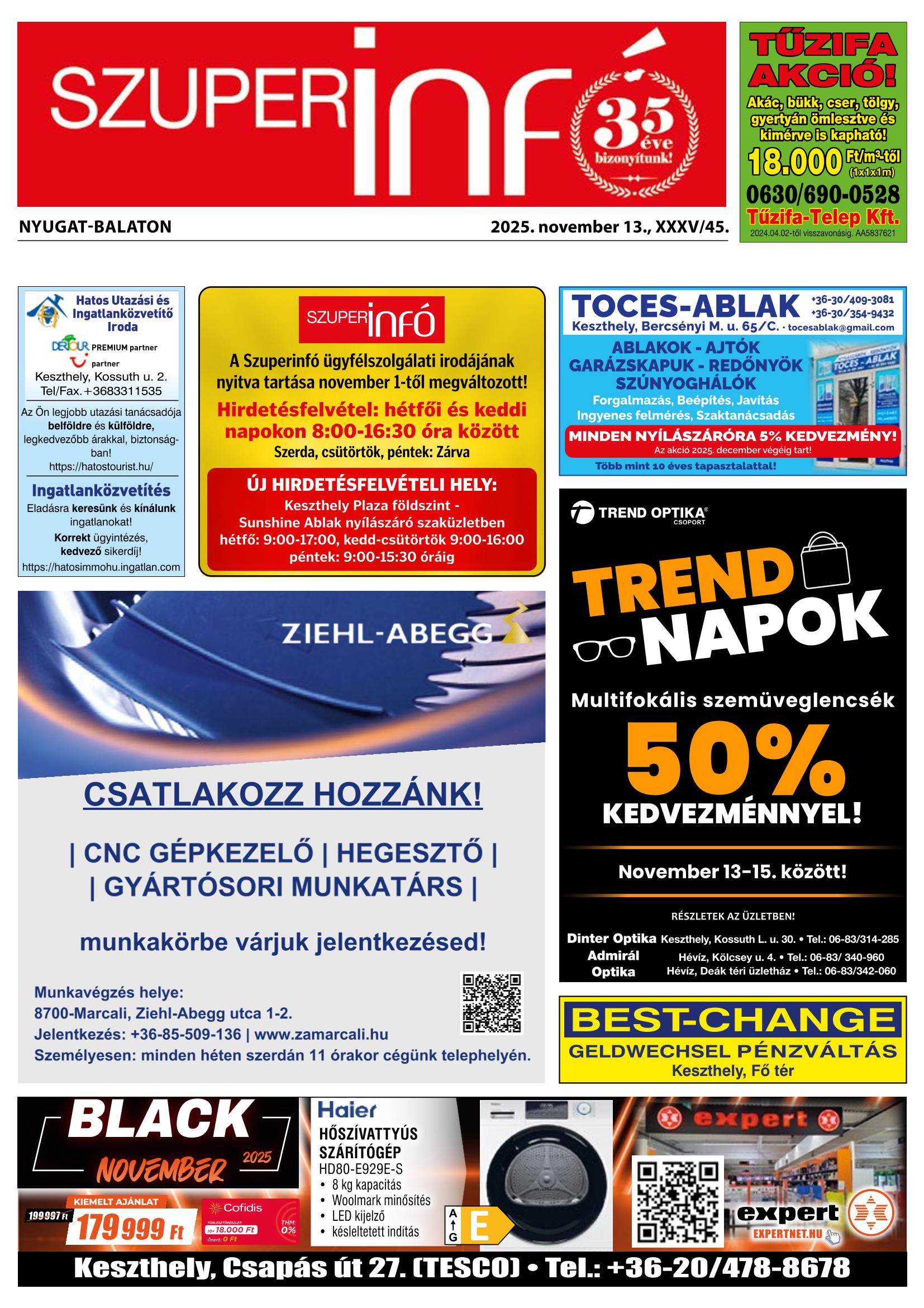 A SZUPERINFÓ online változatát már a hagyományos lap terjesztése előtt olvashatja telefonján vagy számítógépén!