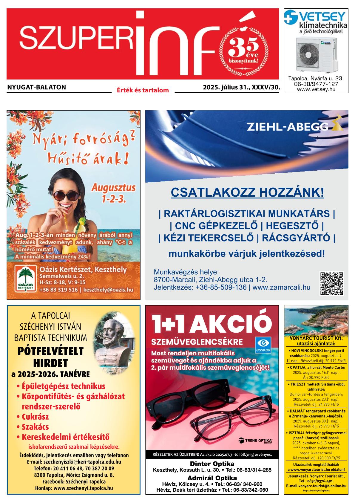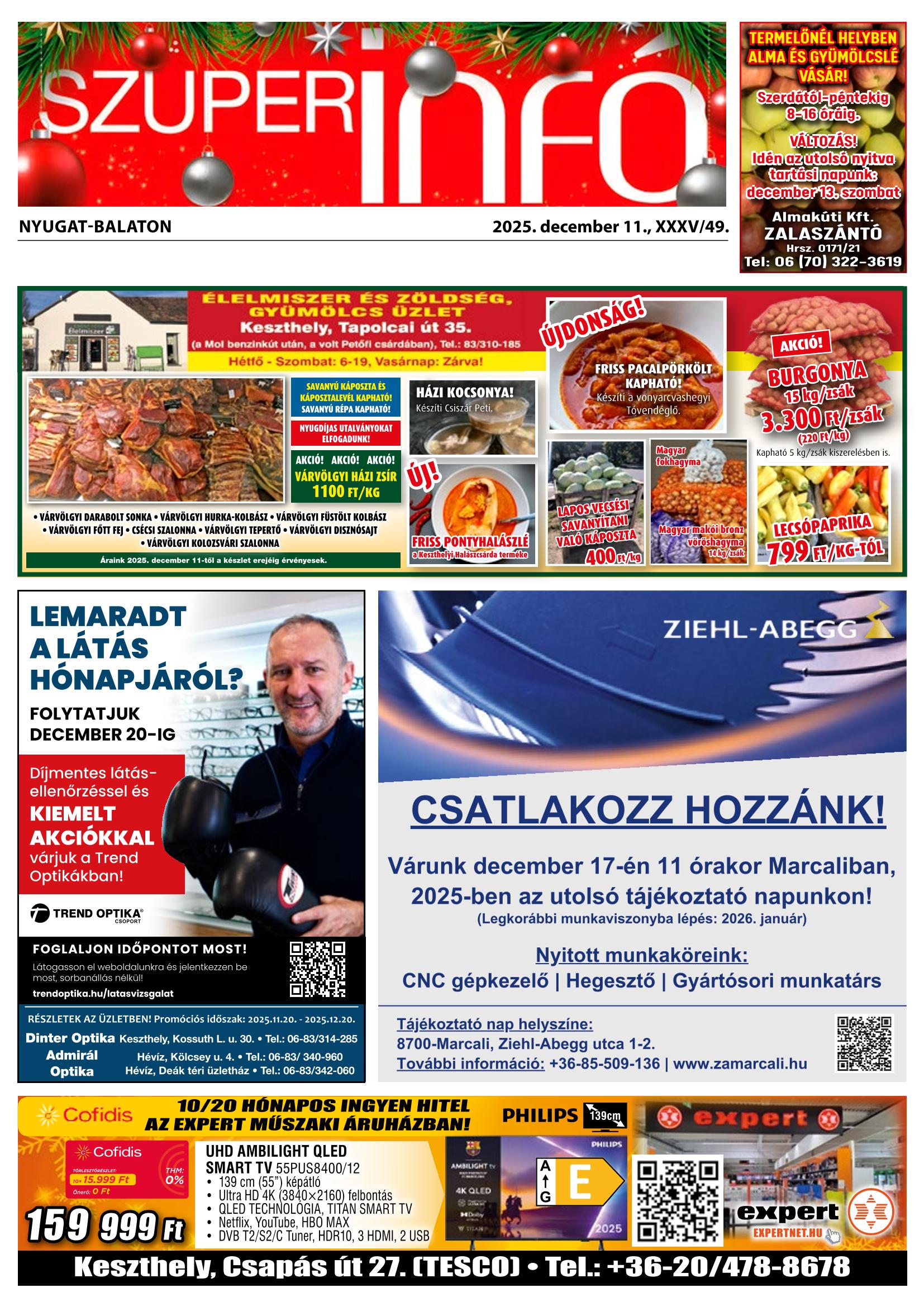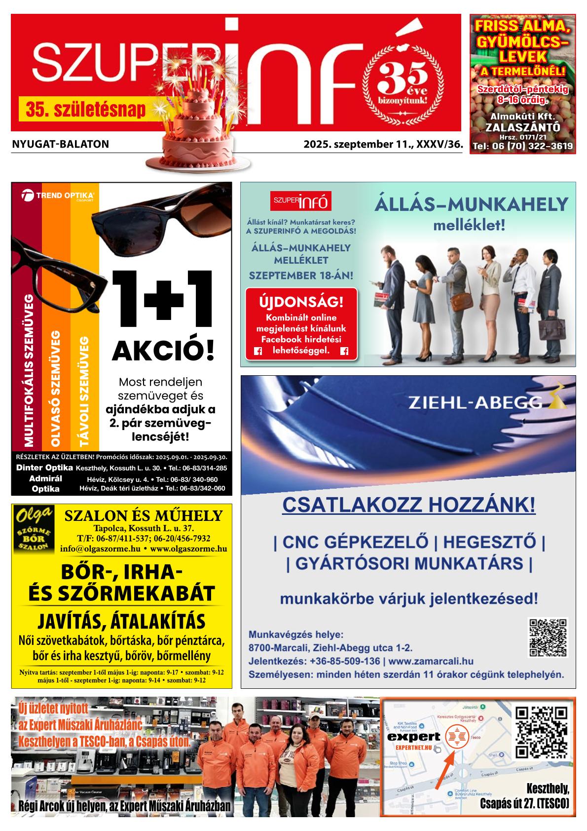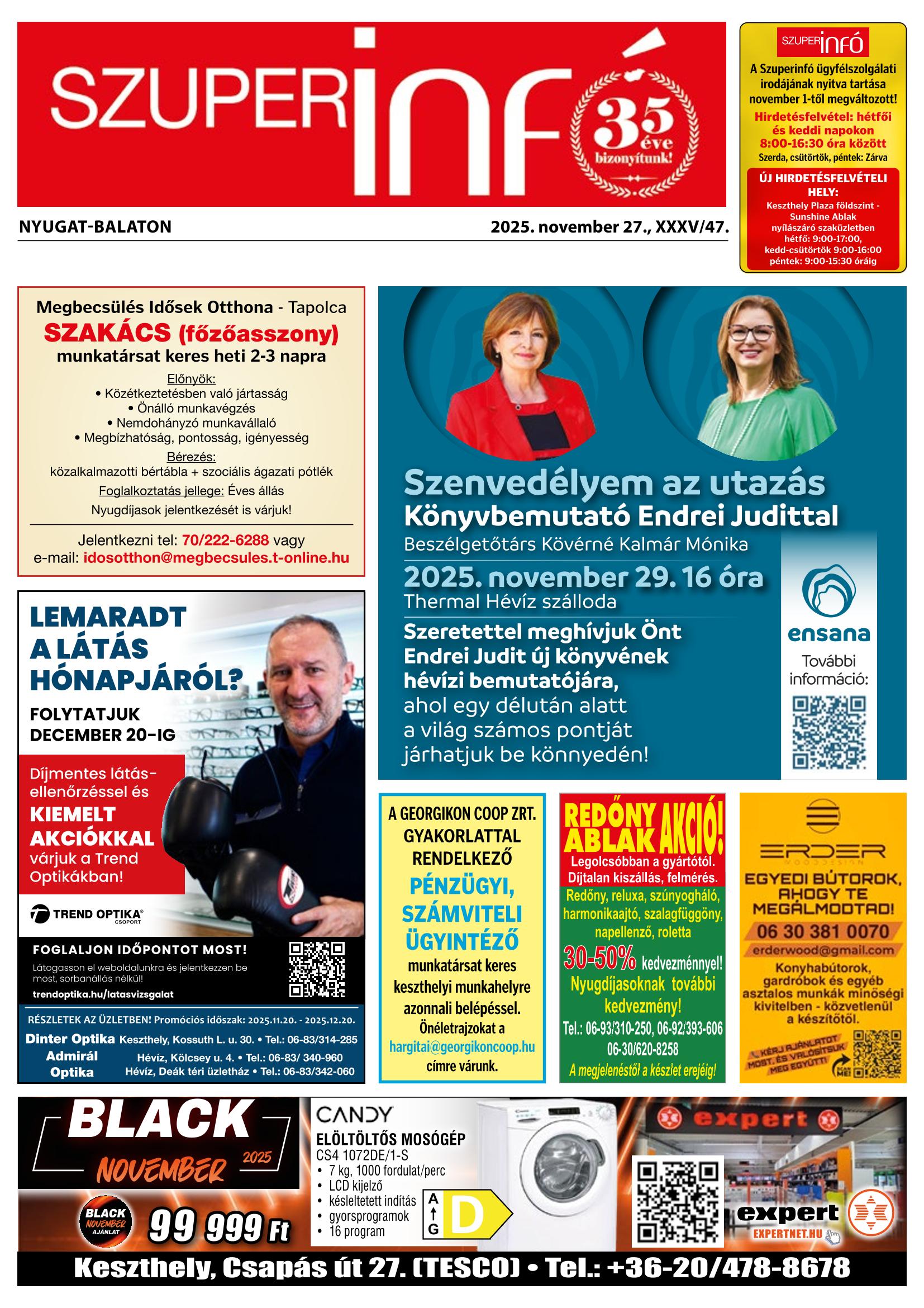 A SZUPERINFÓ online változatát már a hagyományos lap terjesztése előtt olvashatja telefonján vagy számítógépén!