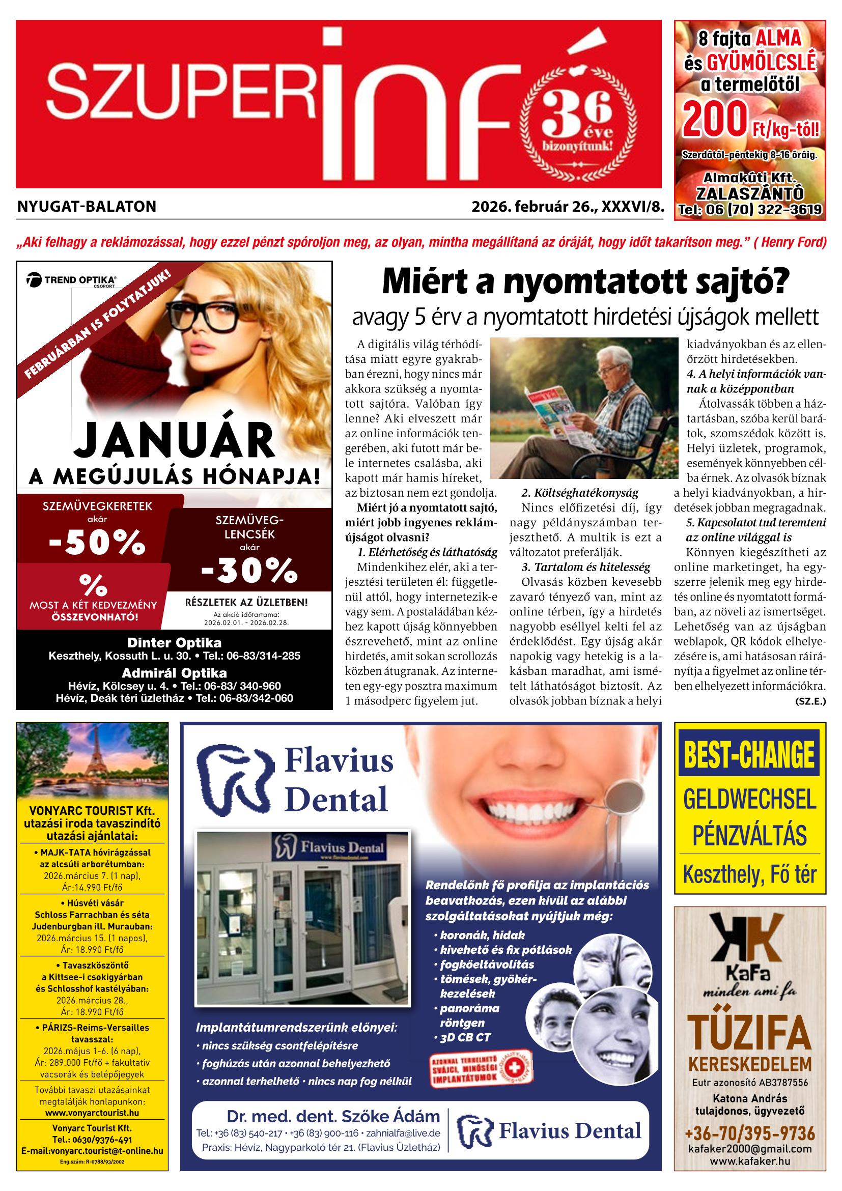 A SZUPERINFÓ online változatát már a hagyományos lap terjesztése előtt olvashatja telefonján vagy számítógépén!