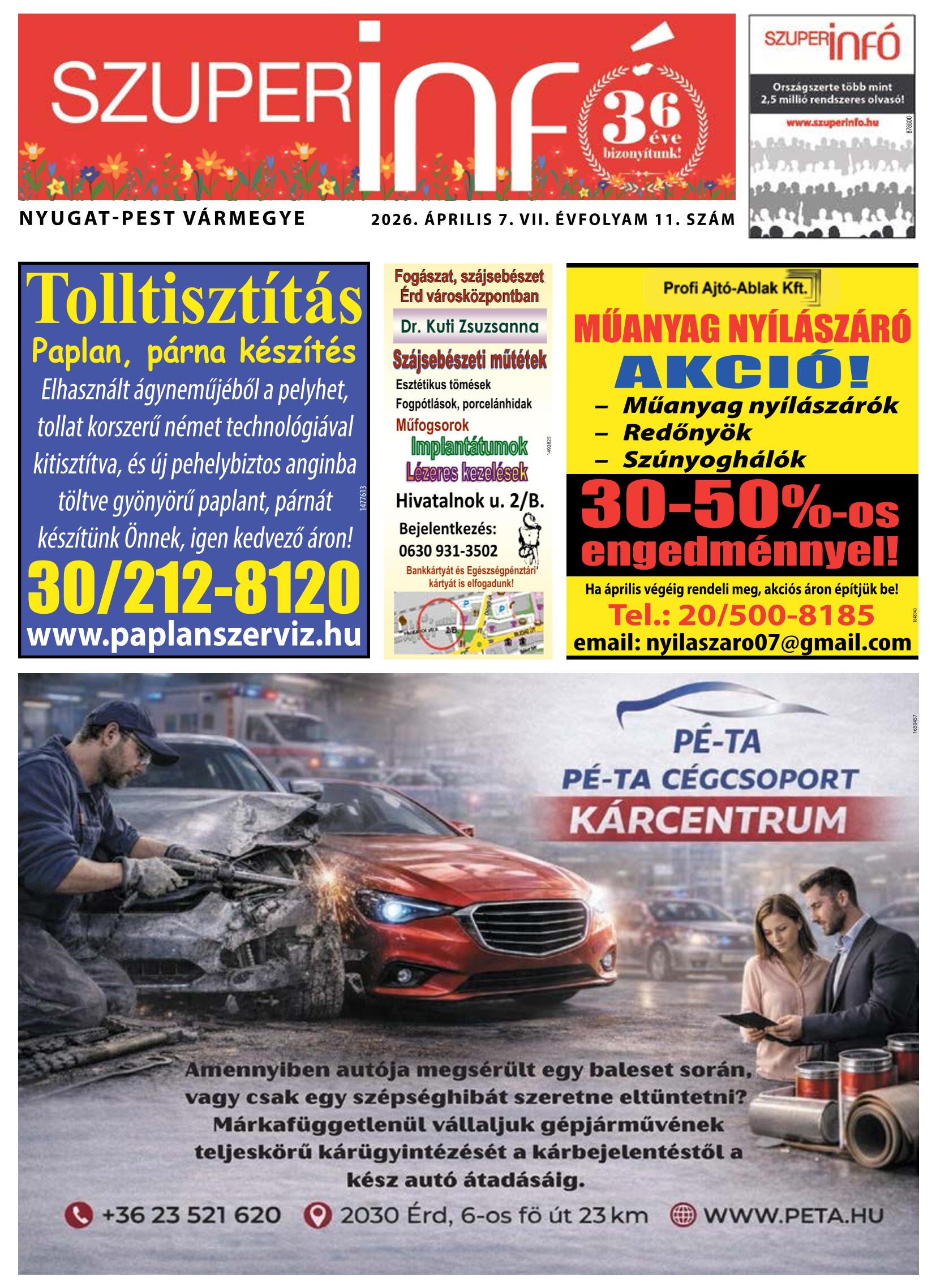 A SZUPERINFÓ online változatát már a hagyományos lap terjesztése előtt olvashatja telefonján vagy számítógépén!