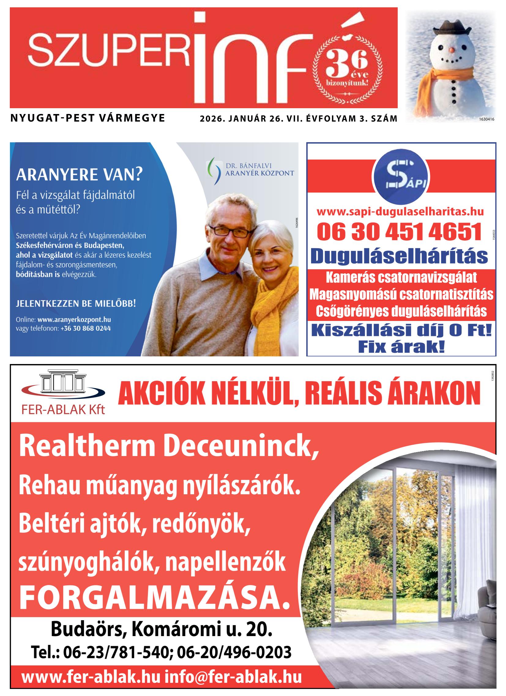 A SZUPERINFÓ online változatát már a hagyományos lap terjesztése előtt olvashatja telefonján vagy számítógépén!