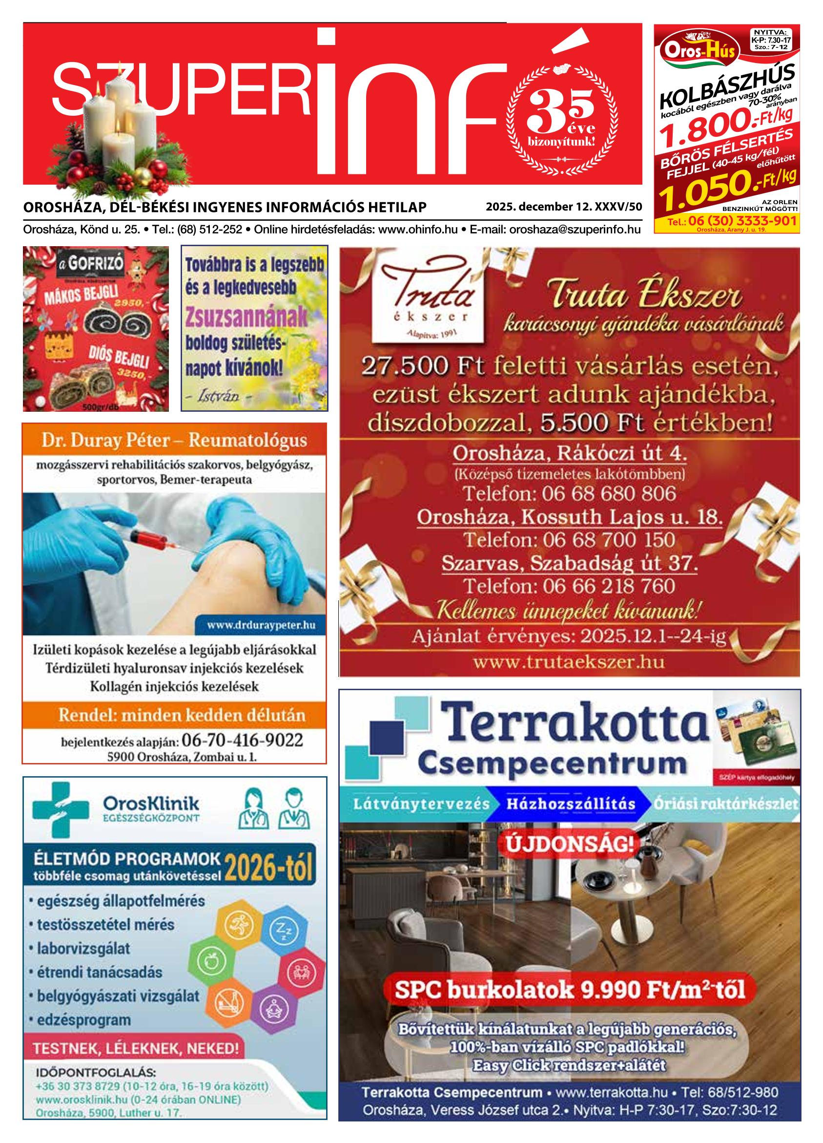 A SZUPERINFÓ online változatát már a hagyományos lap terjesztése előtt olvashatja telefonján vagy számítógépén!