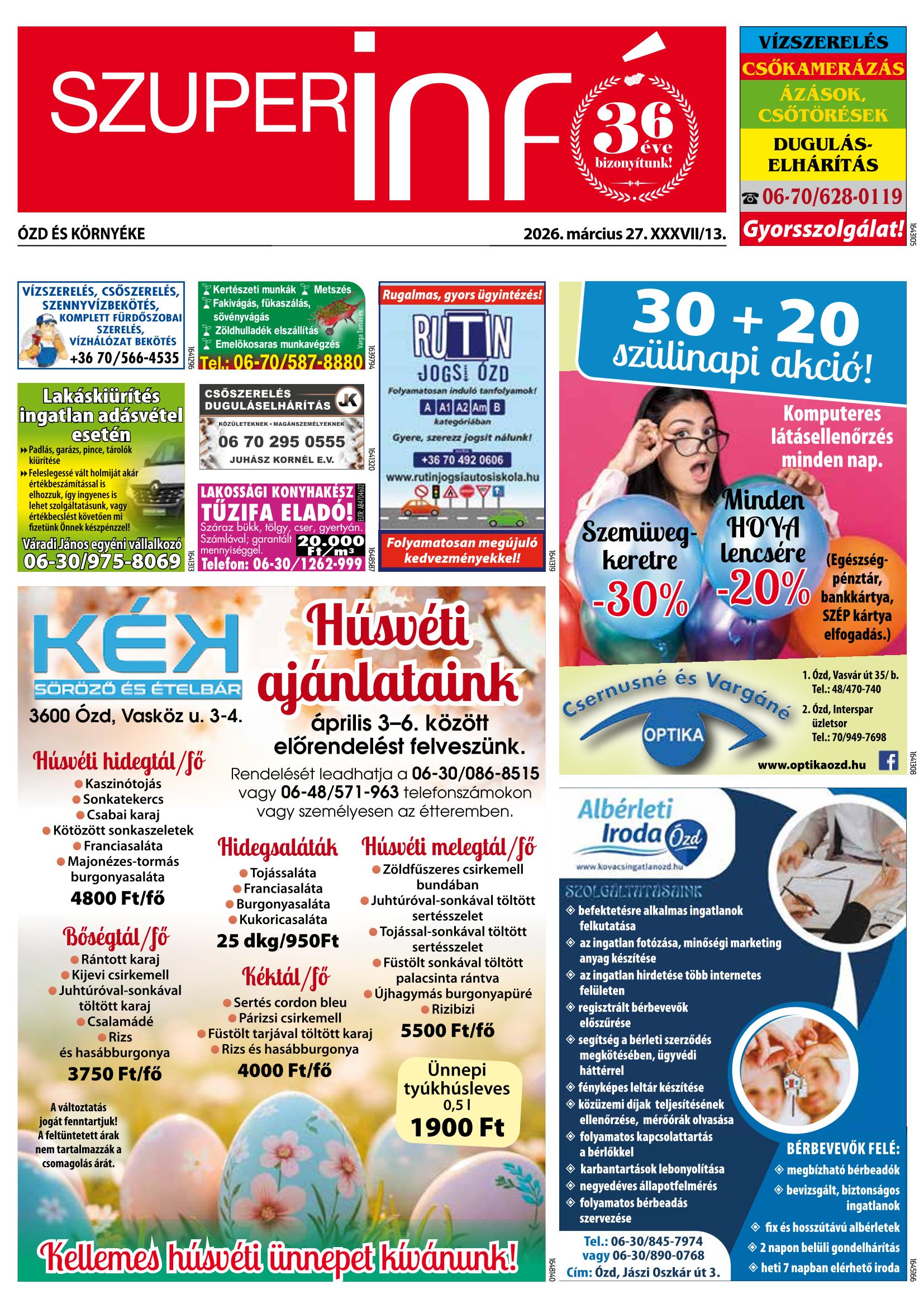 A SZUPERINFÓ online változatát már a hagyományos lap terjesztése előtt olvashatja telefonján vagy számítógépén!