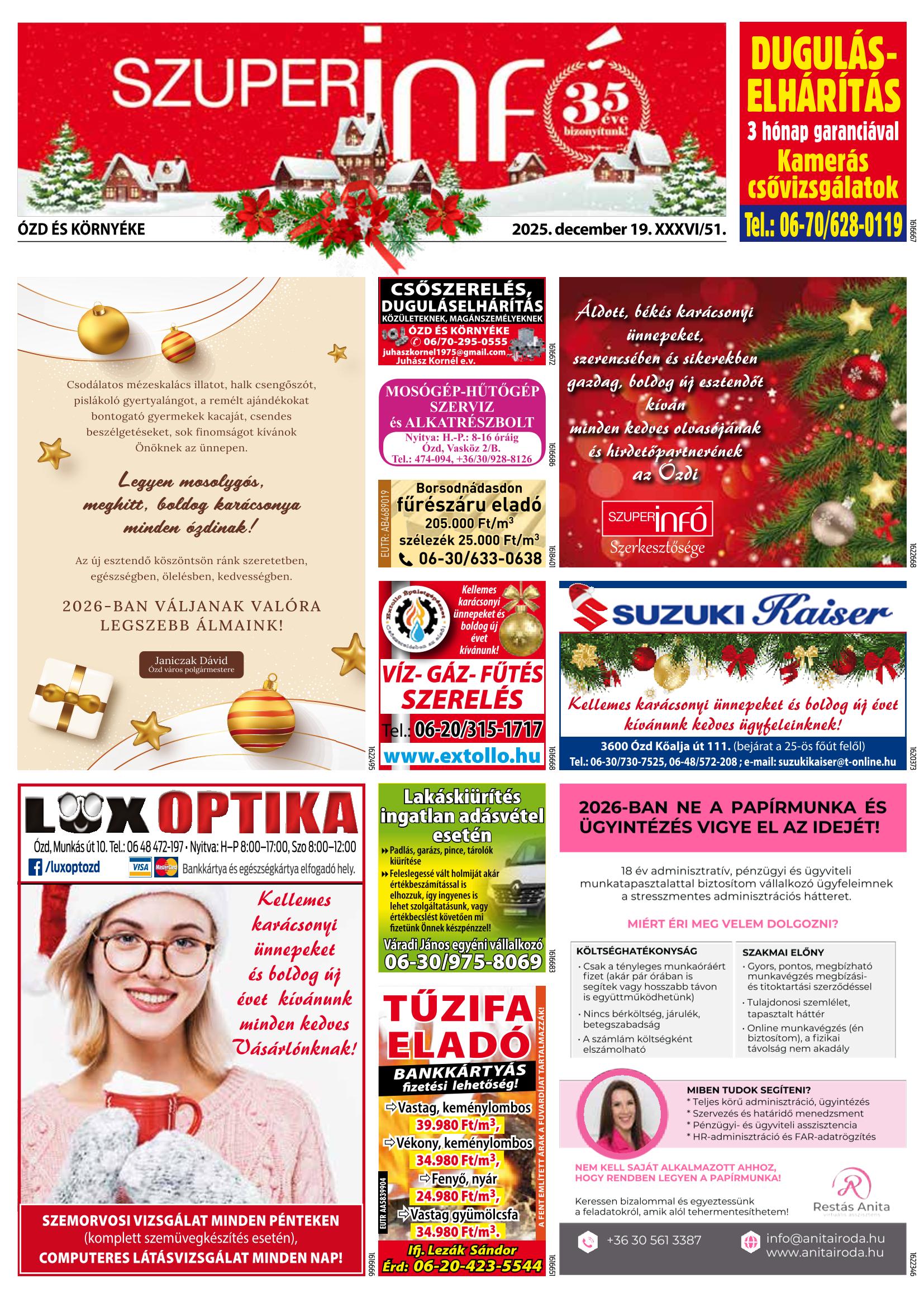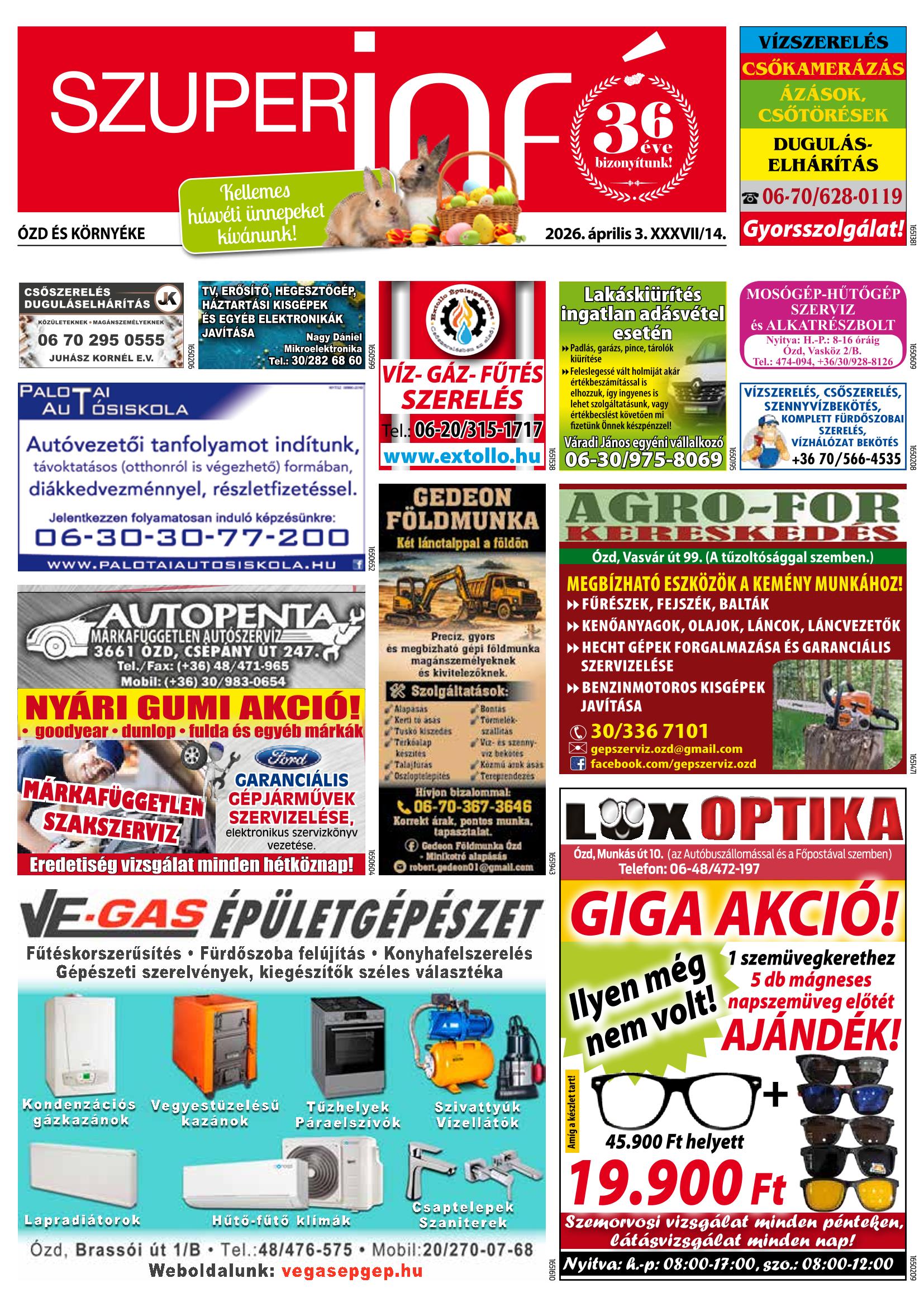 A SZUPERINFÓ online változatát már a hagyományos lap terjesztése előtt olvashatja telefonján vagy számítógépén!