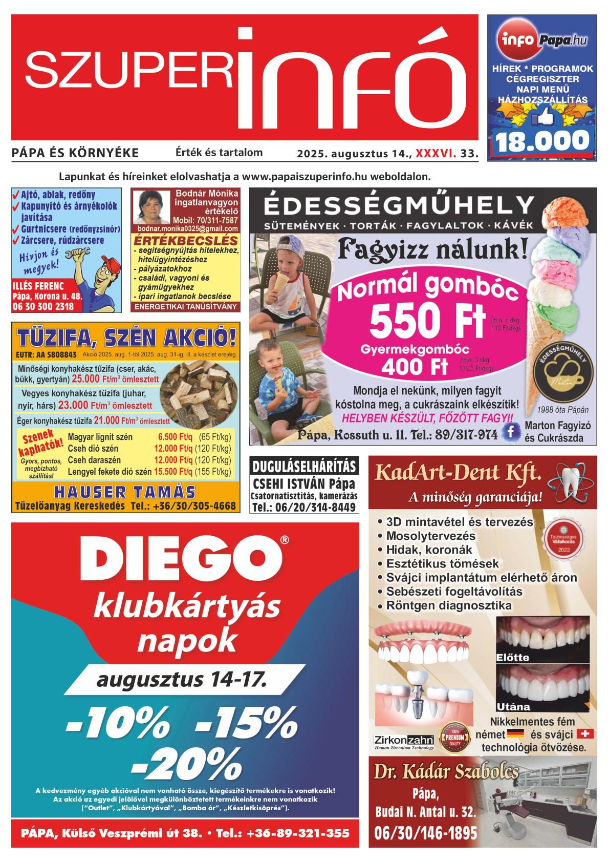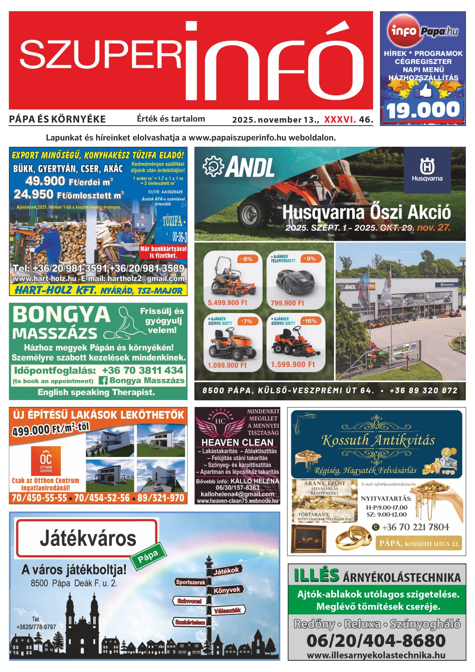 A SZUPERINFÓ online változatát már a hagyományos lap terjesztése előtt olvashatja telefonján vagy számítógépén!