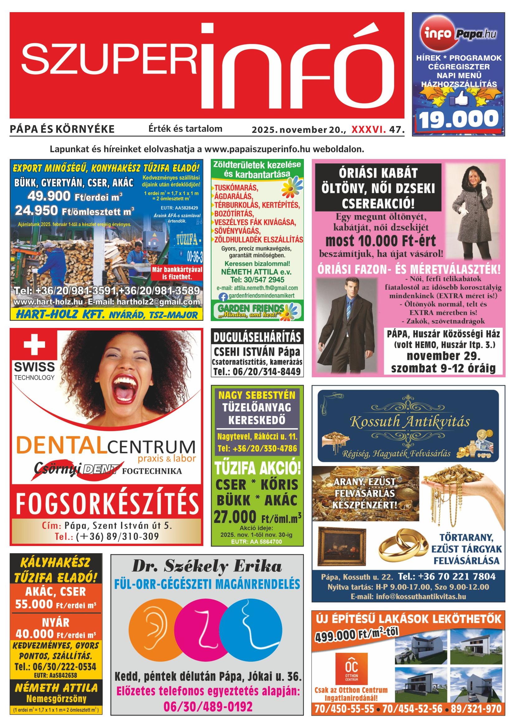 A SZUPERINFÓ online változatát már a hagyományos lap terjesztése előtt olvashatja telefonján vagy számítógépén!
