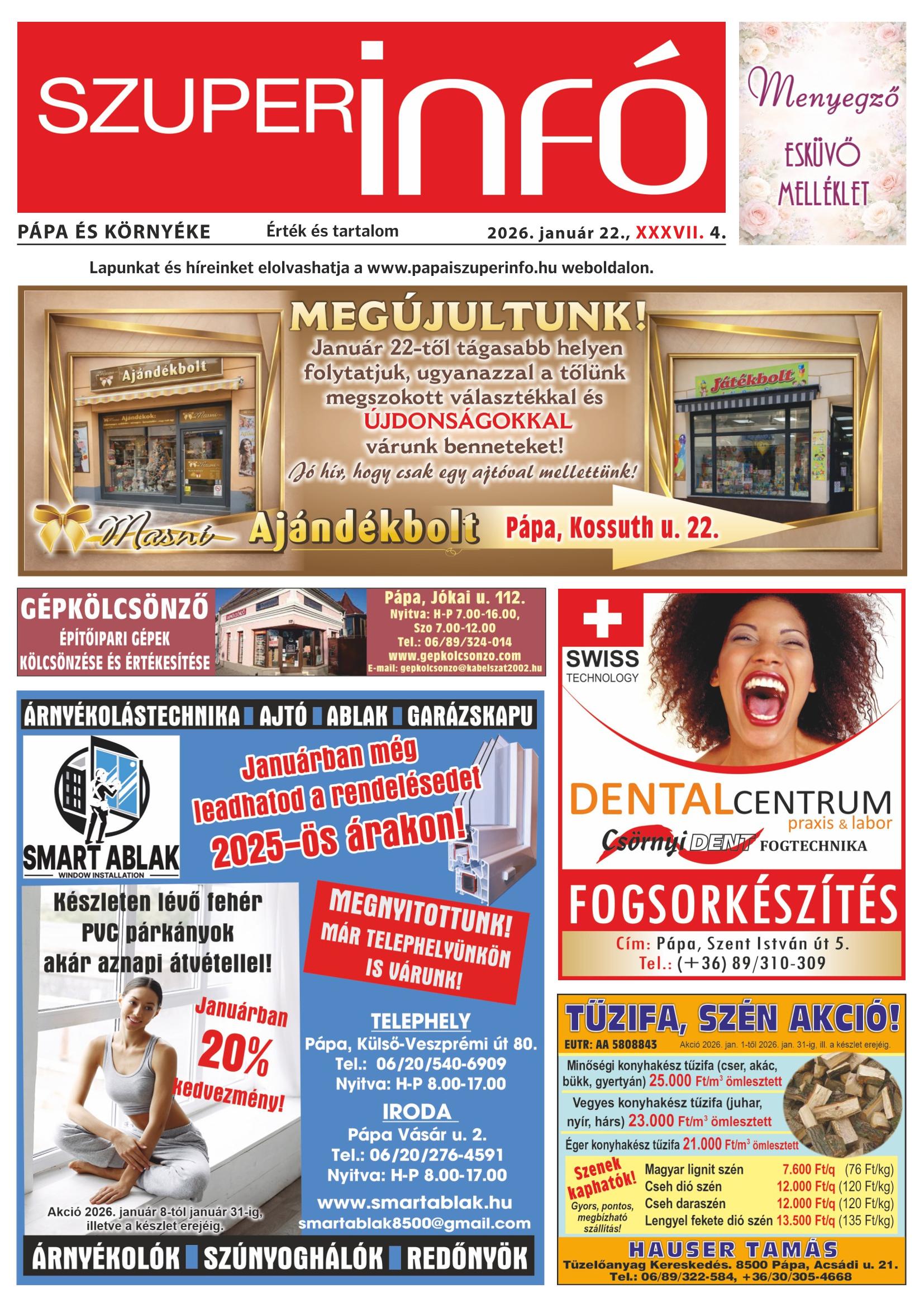 A SZUPERINFÓ online változatát már a hagyományos lap terjesztése előtt olvashatja telefonján vagy számítógépén!