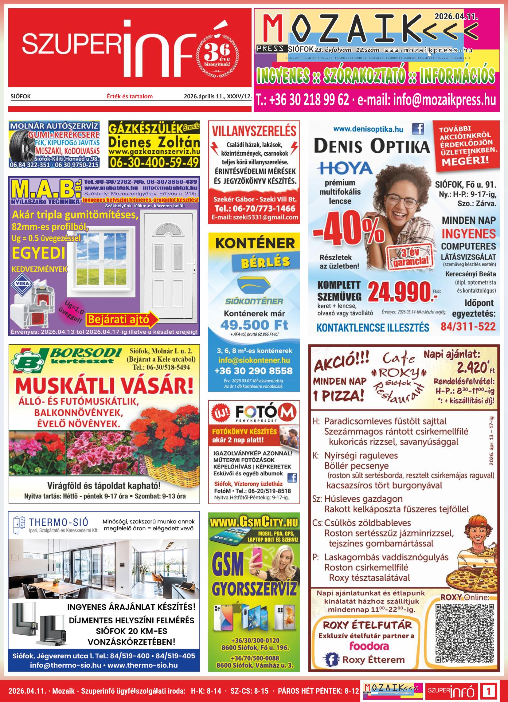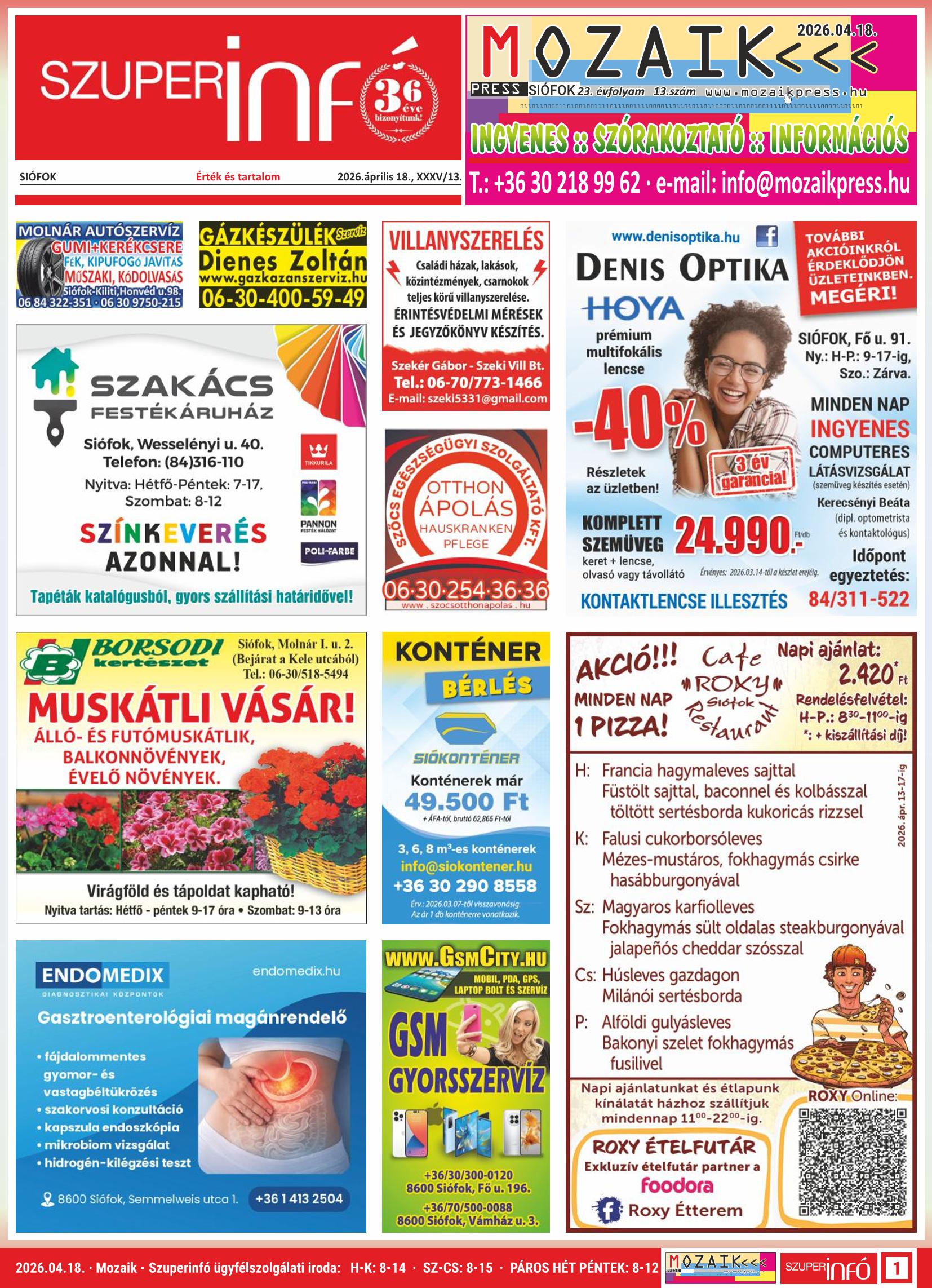 A SZUPERINFÓ online változatát már a hagyományos lap terjesztése előtt olvashatja telefonján vagy számítógépén!