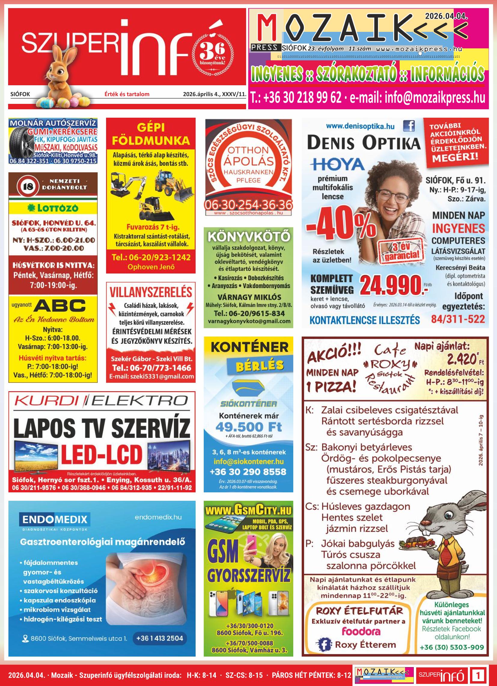A SZUPERINFÓ online változatát már a hagyományos lap terjesztése előtt olvashatja telefonján vagy számítógépén!