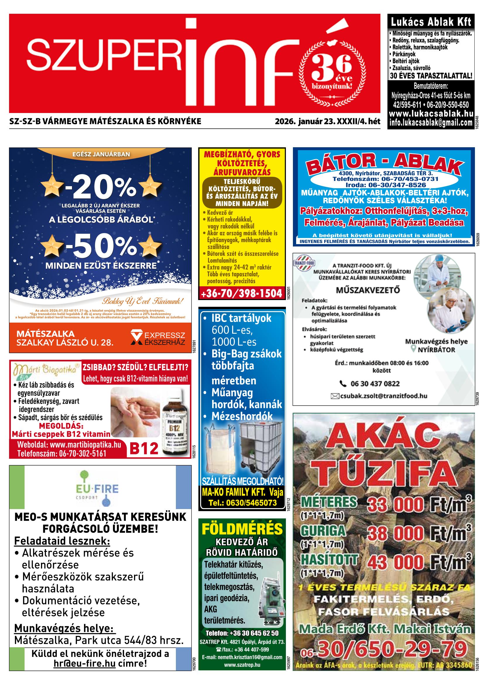 Iratkozzon fel, és megküldjük Önnek a FRISS SZUPERINFÓ újságot!