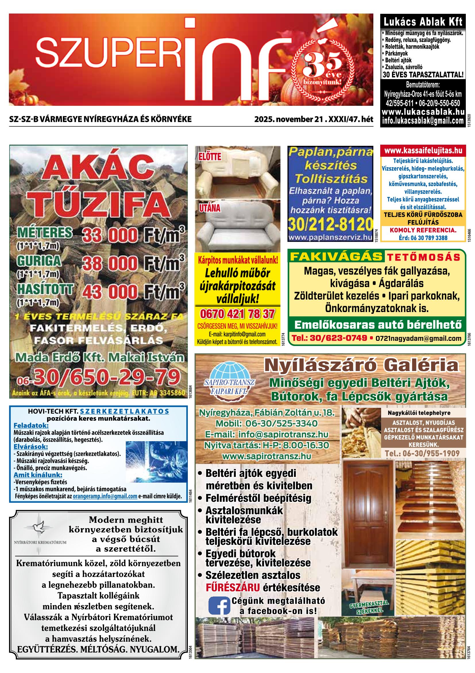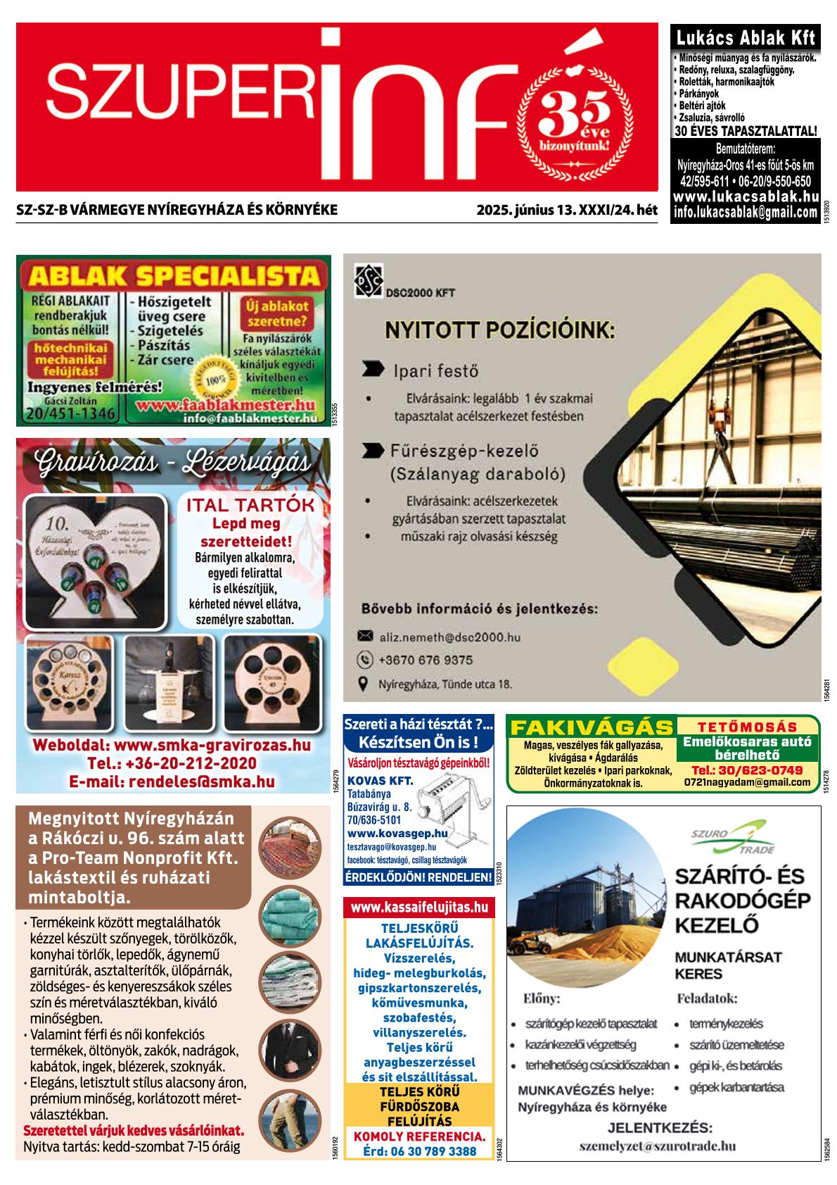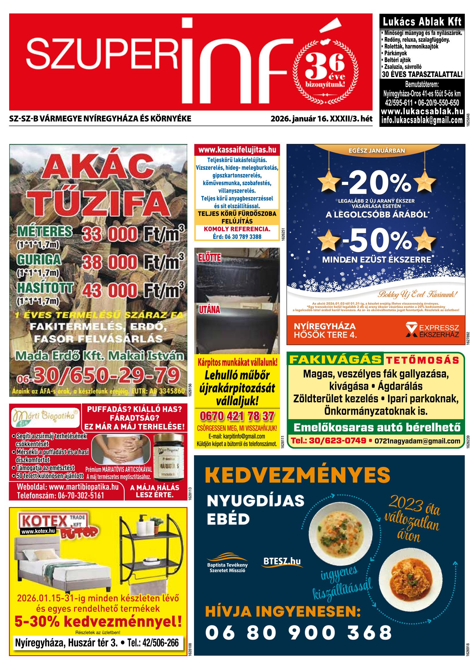 A SZUPERINFÓ online változatát már a hagyományos lap terjesztése előtt olvashatja telefonján vagy számítógépén!