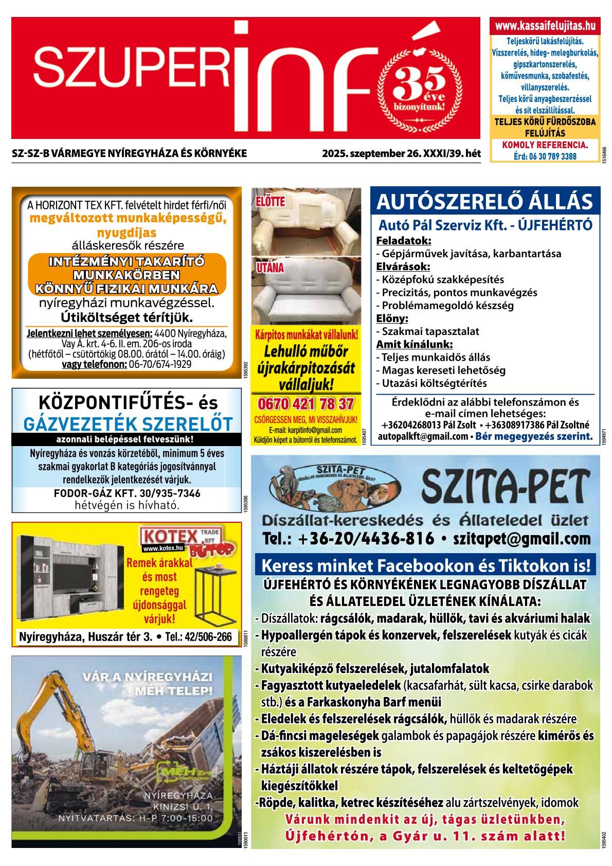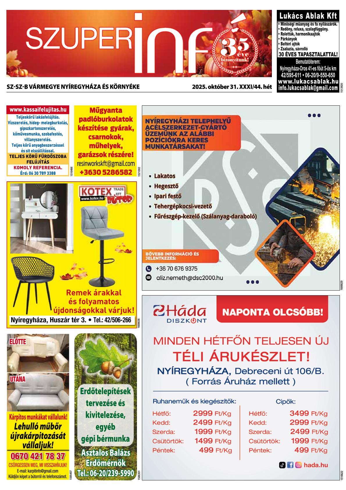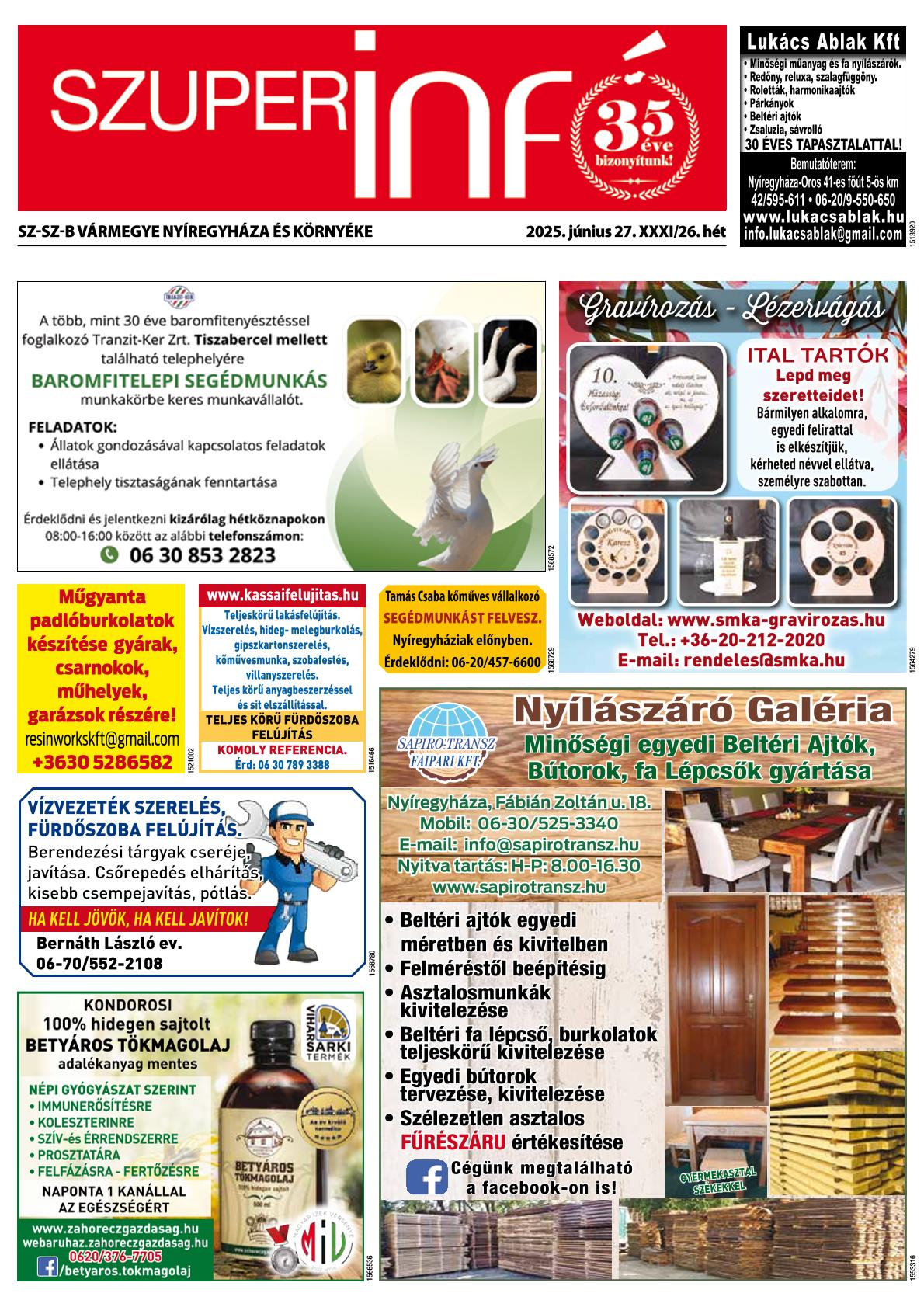 A SZUPERINFÓ online változatát már a hagyományos lap terjesztése előtt olvashatja telefonján vagy számítógépén!