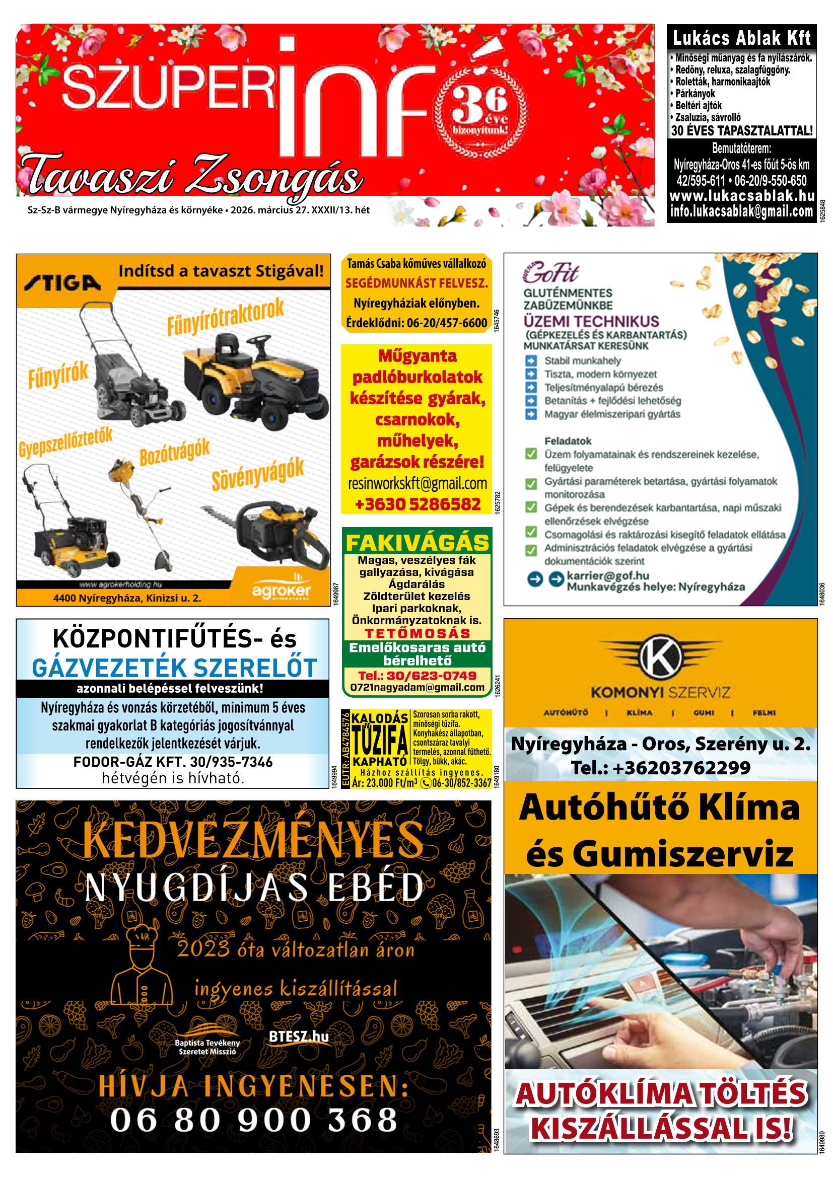 A SZUPERINFÓ online változatát már a hagyományos lap terjesztése előtt olvashatja telefonján vagy számítógépén!