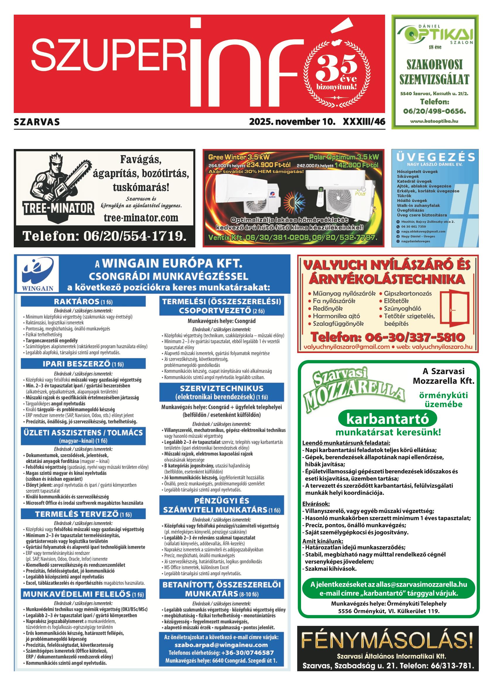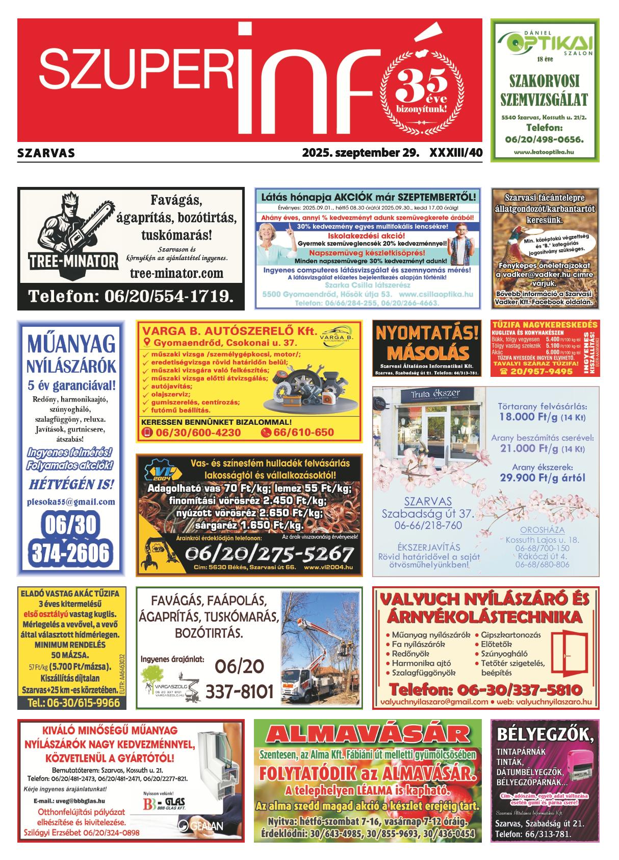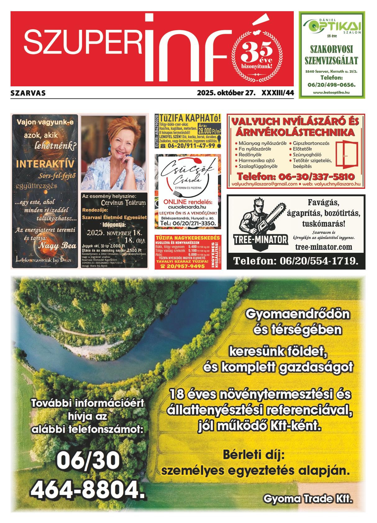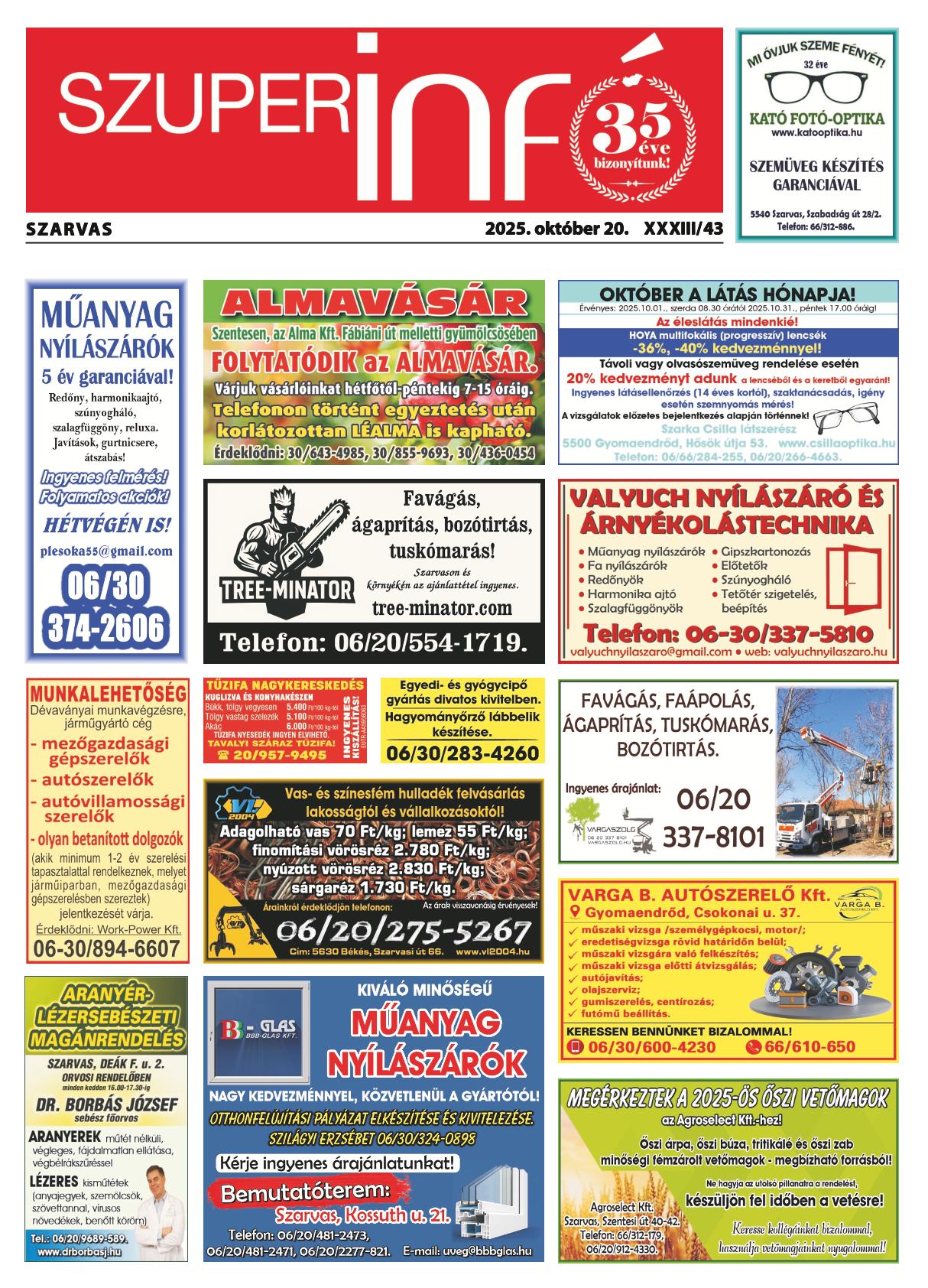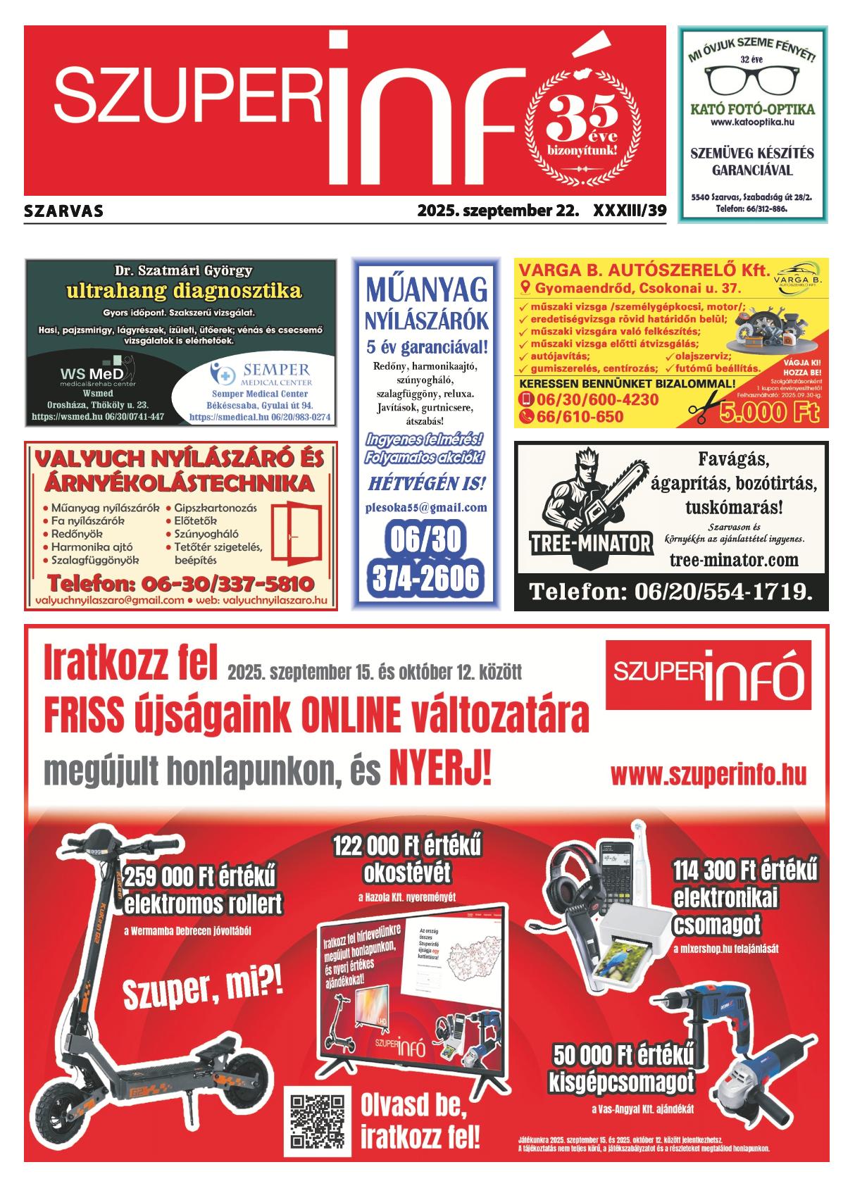 A SZUPERINFÓ online változatát már a hagyományos lap terjesztése előtt olvashatja telefonján vagy számítógépén!