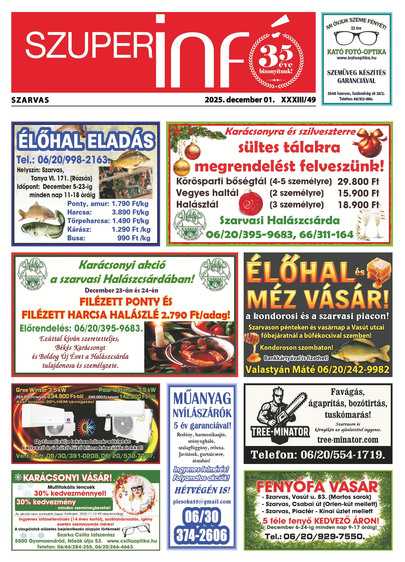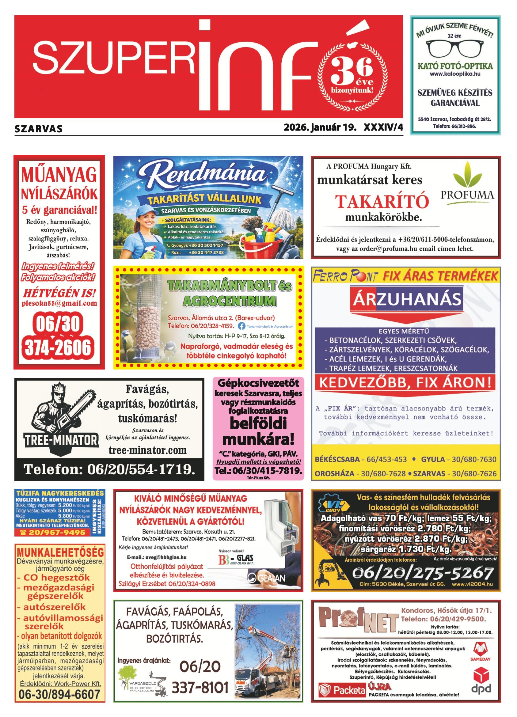 A SZUPERINFÓ online változatát már a hagyományos lap terjesztése előtt olvashatja telefonján vagy számítógépén!