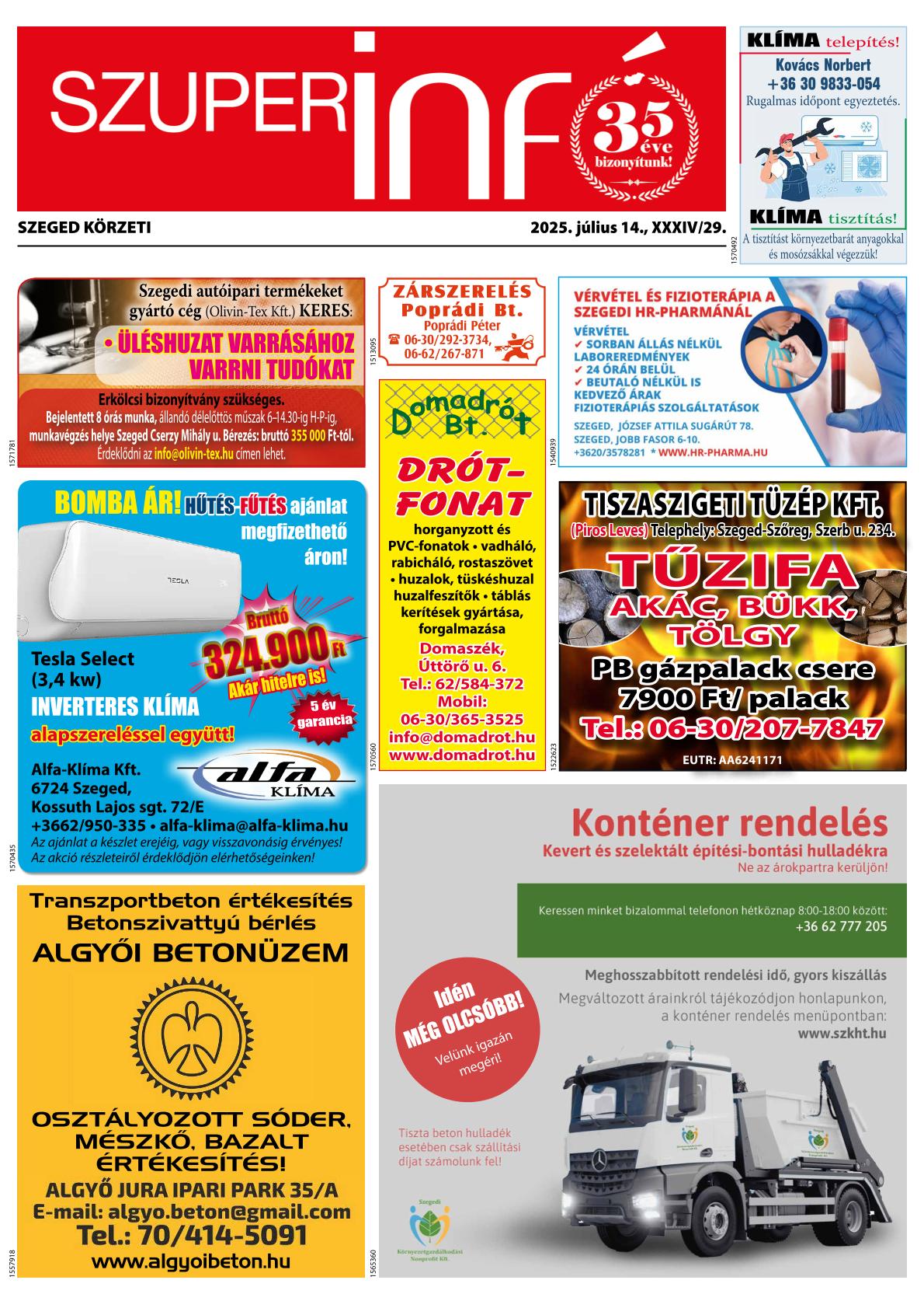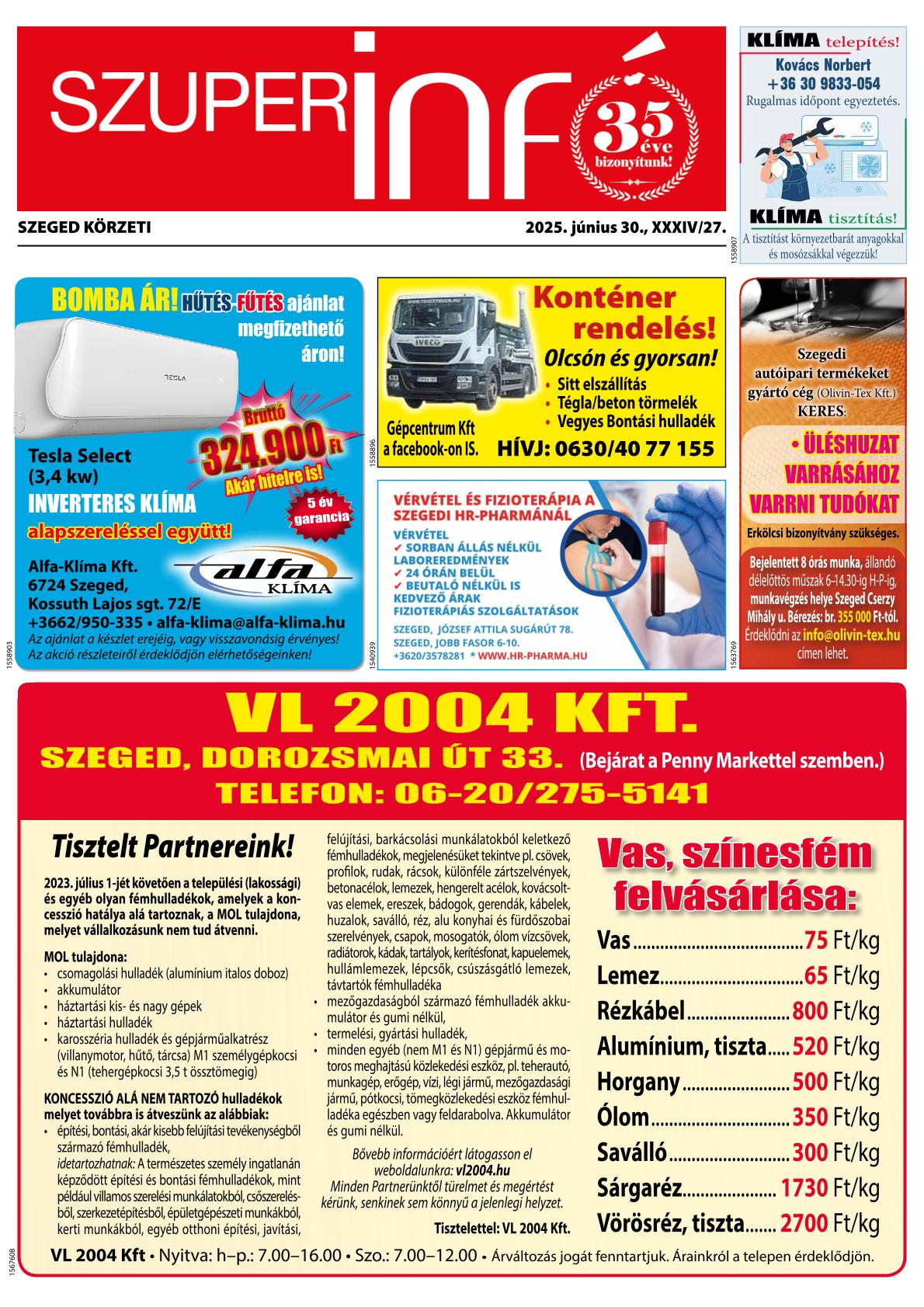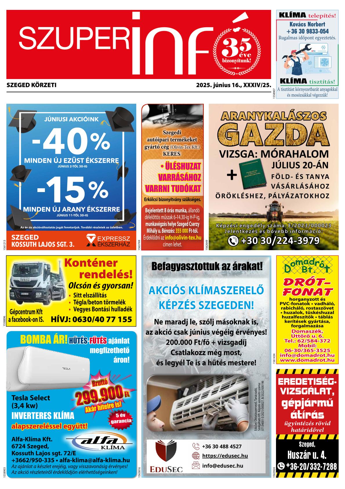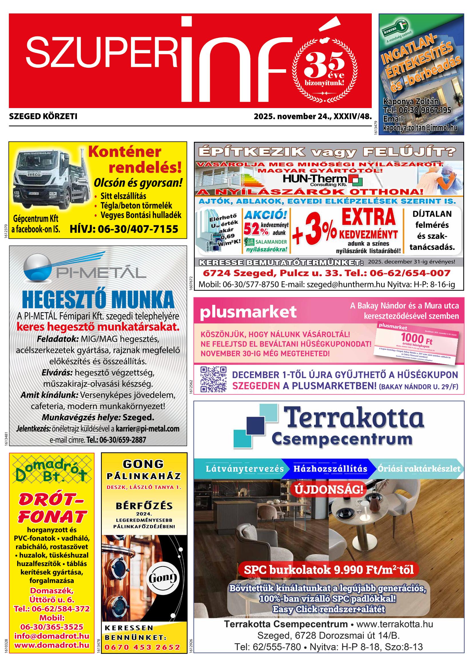 Iratkozzon fel, és megküldjük Önnek a FRISS SZUPERINFÓ újságot!
