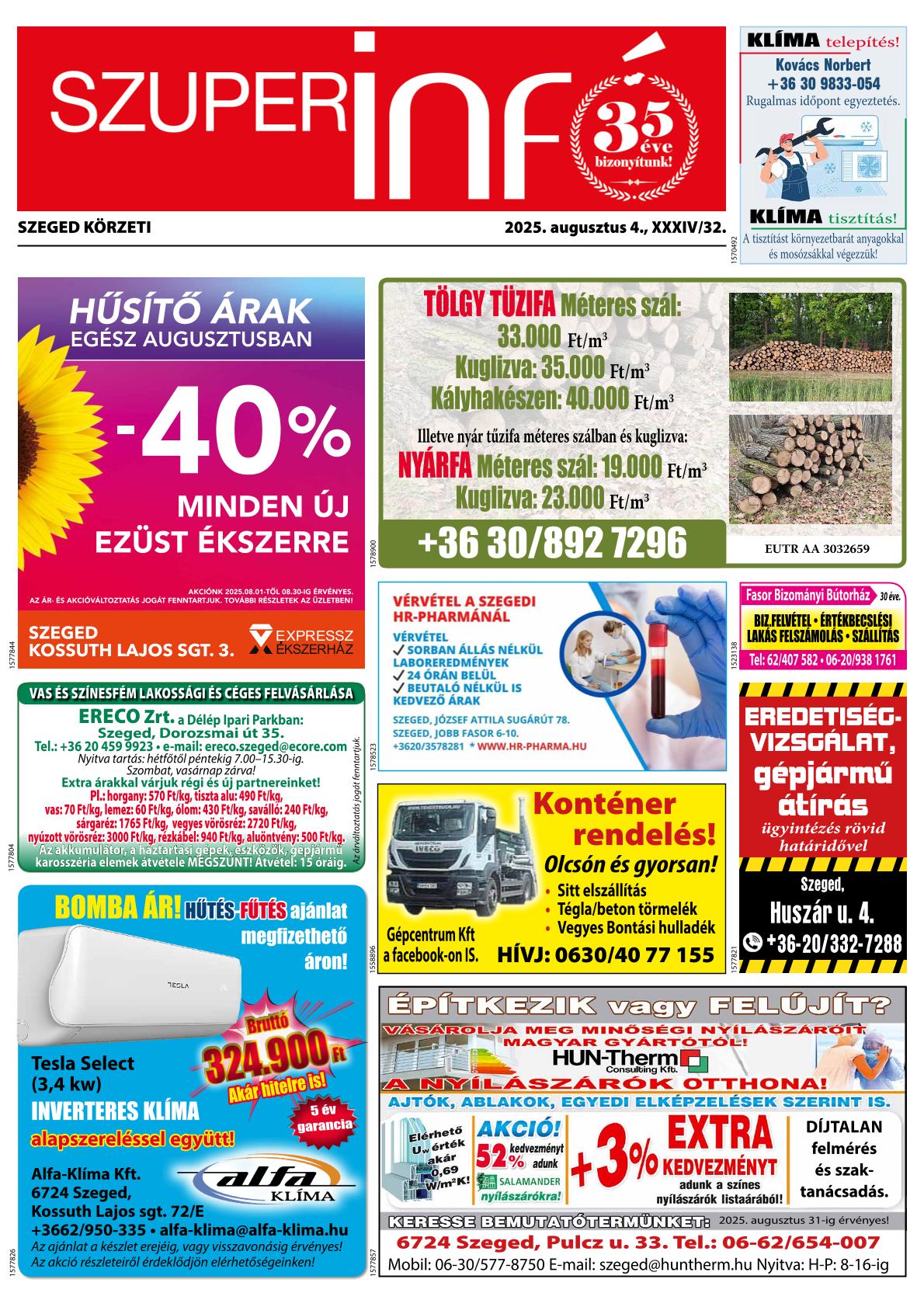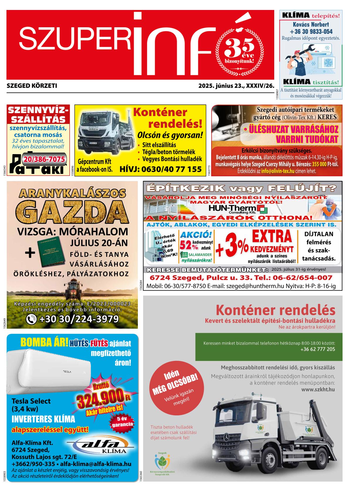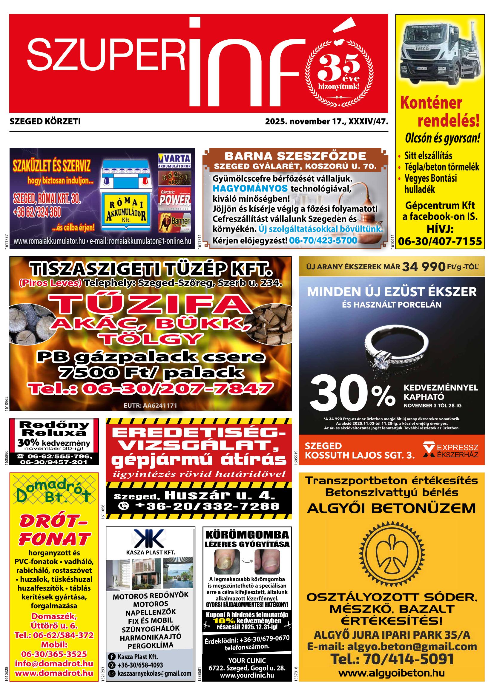 A SZUPERINFÓ online változatát már a hagyományos lap terjesztése előtt olvashatja telefonján vagy számítógépén!
