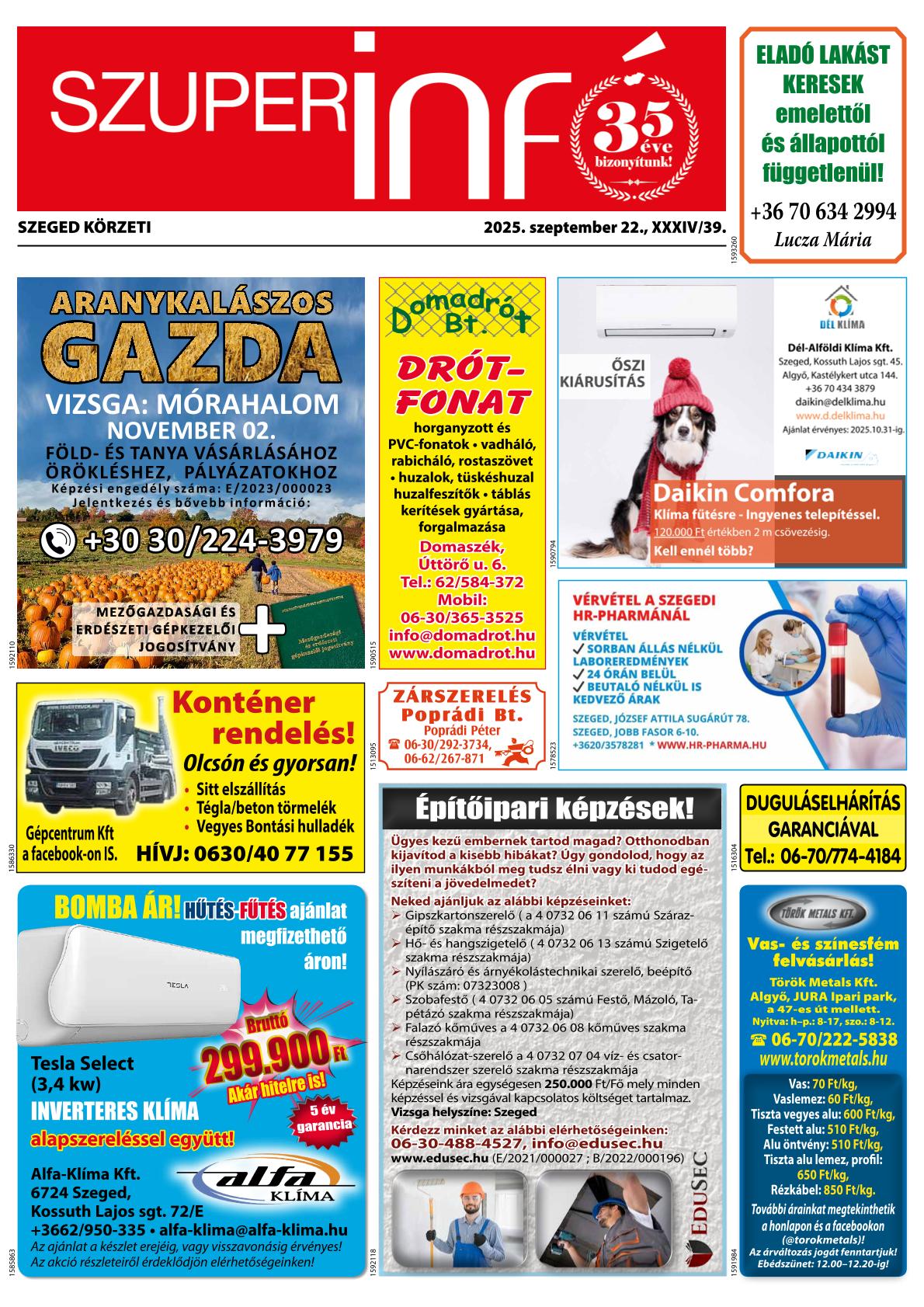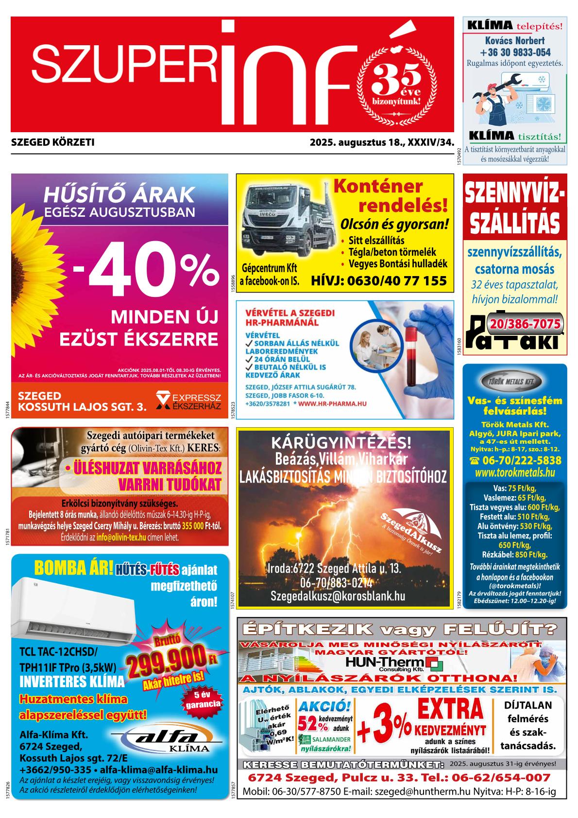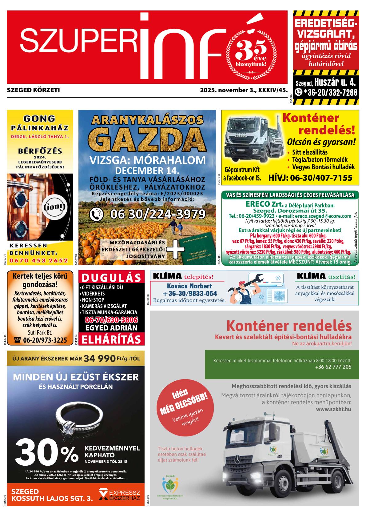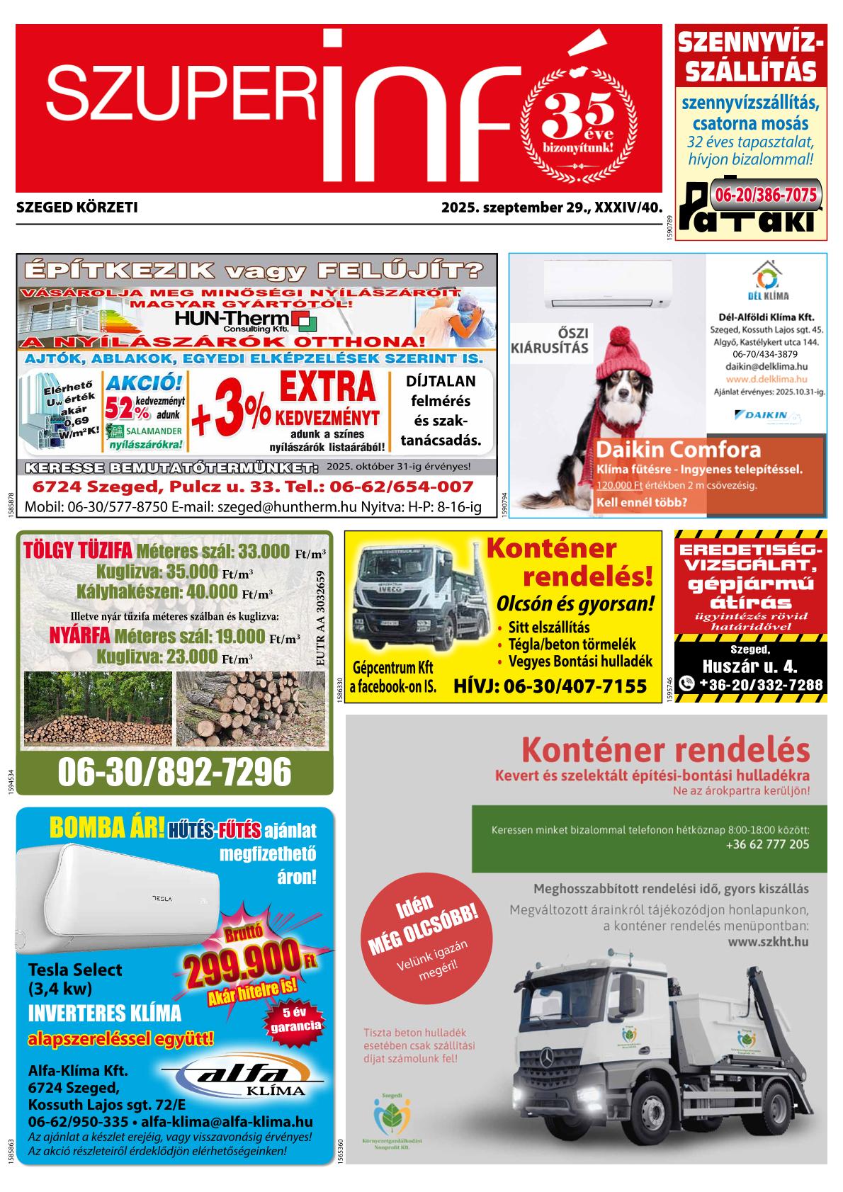 A SZUPERINFÓ online változatát már a hagyományos lap terjesztése előtt olvashatja telefonján vagy számítógépén!