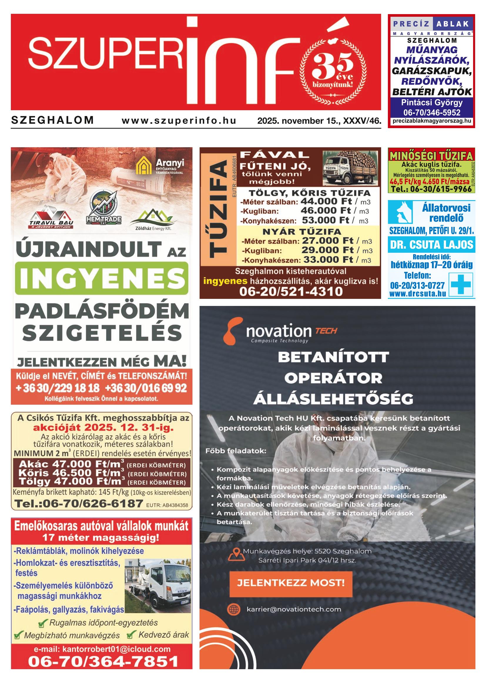 A SZUPERINFÓ online változatát már a hagyományos lap terjesztése előtt olvashatja telefonján vagy számítógépén!
