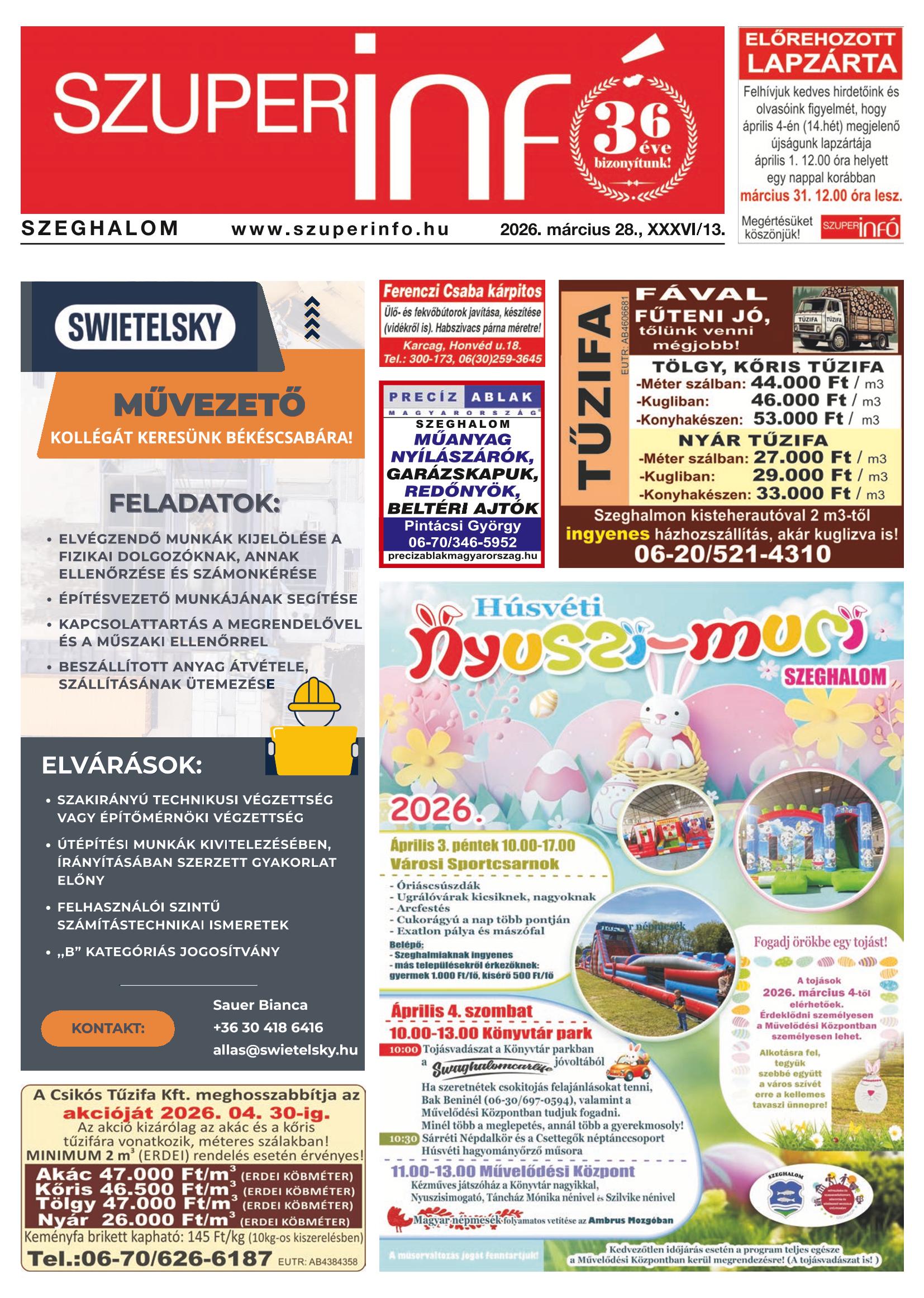 A SZUPERINFÓ online változatát már a hagyományos lap terjesztése előtt olvashatja telefonján vagy számítógépén!