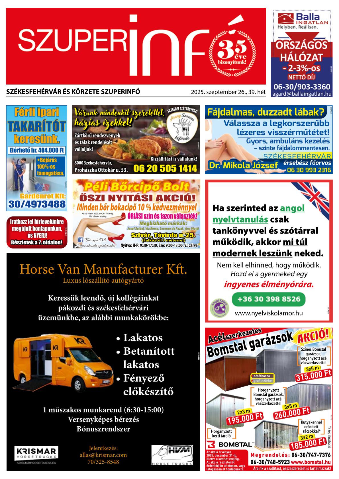 A SZUPERINFÓ online változatát már a hagyományos lap terjesztése előtt olvashatja telefonján vagy számítógépén!