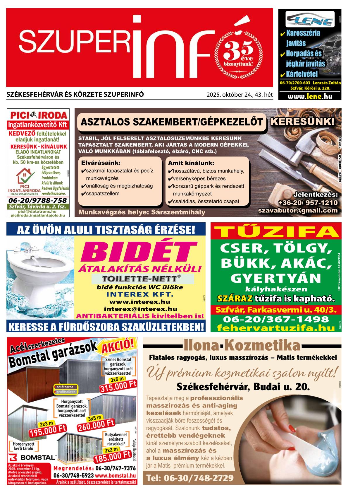 A keresési lehetőségek segítségével találja meg az Önt érdeklő Szuperinfó újságot