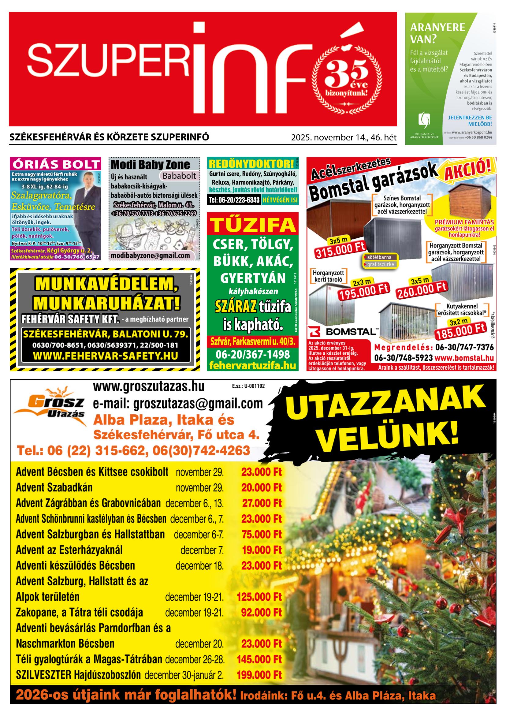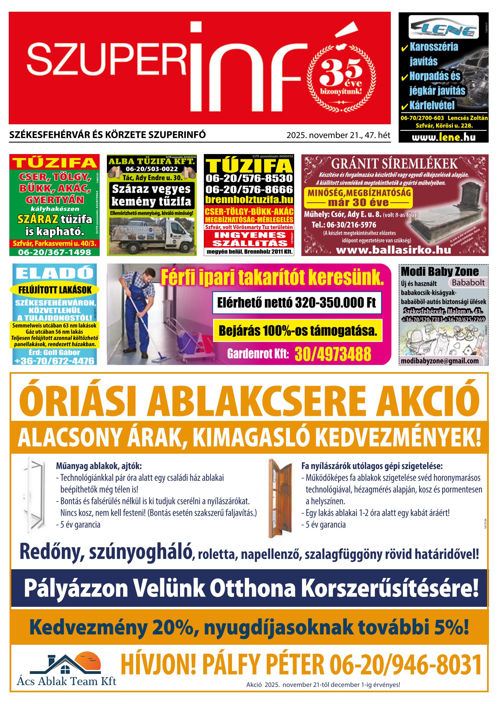 Székesfehérvár és Körzete Szuperinfó szerkesztőség elérhetőségei