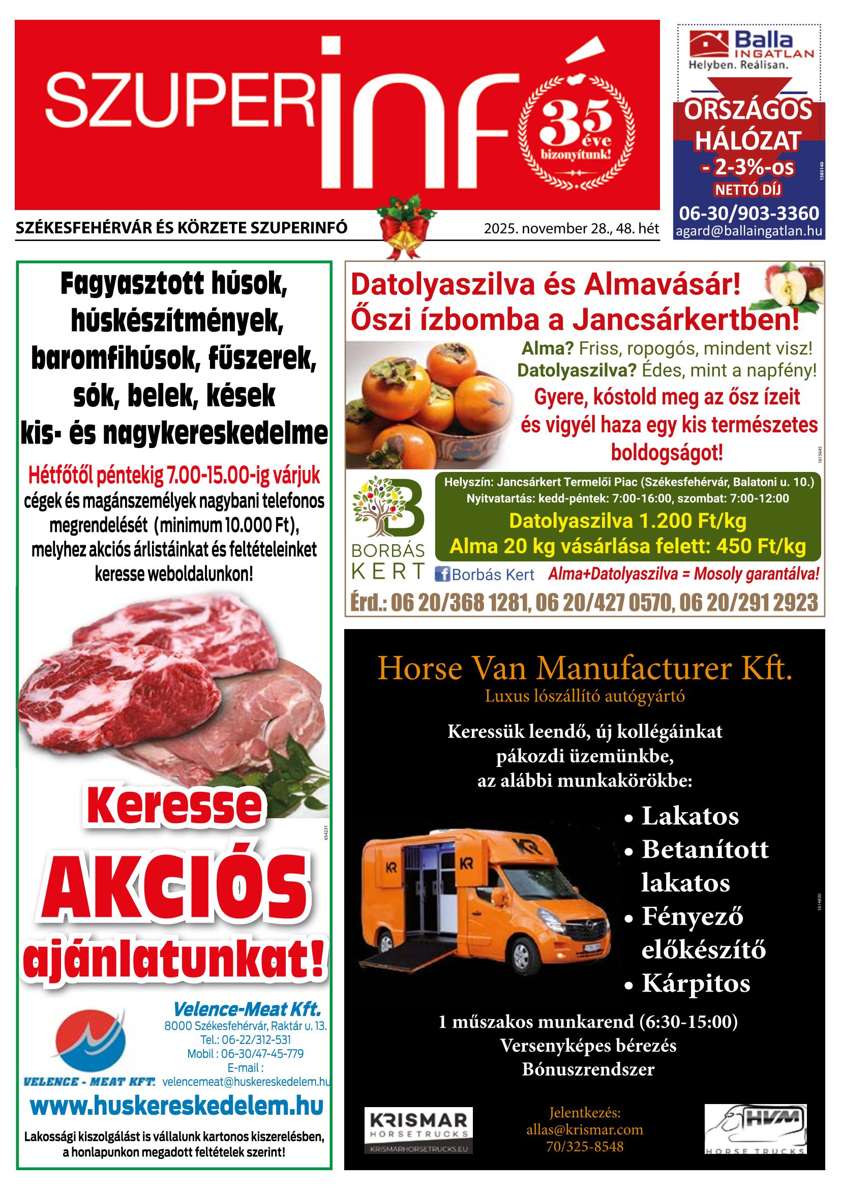 Iratkozzon fel, és megküldjük Önnek a FRISS SZUPERINFÓ újságot!
