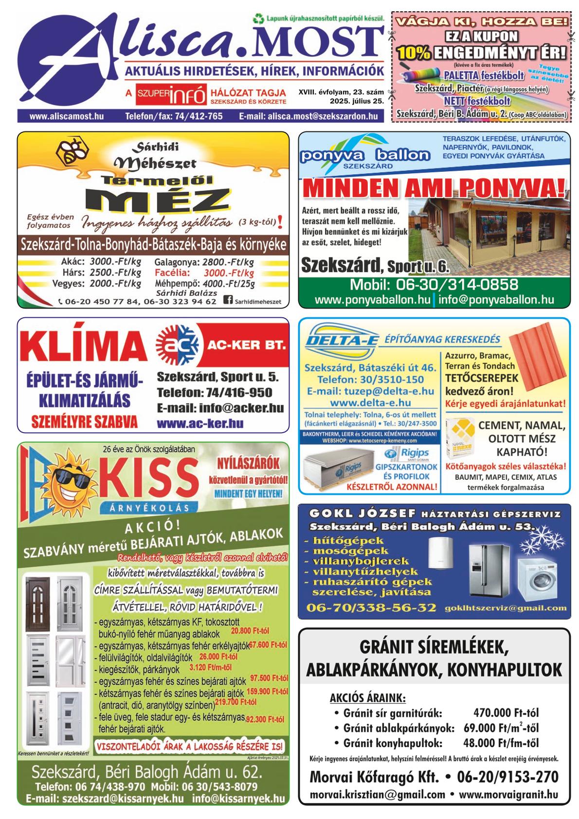 Alisca. Most A Szuperinfó hálózat tagja Szekszárd és körzete Szuperinfó