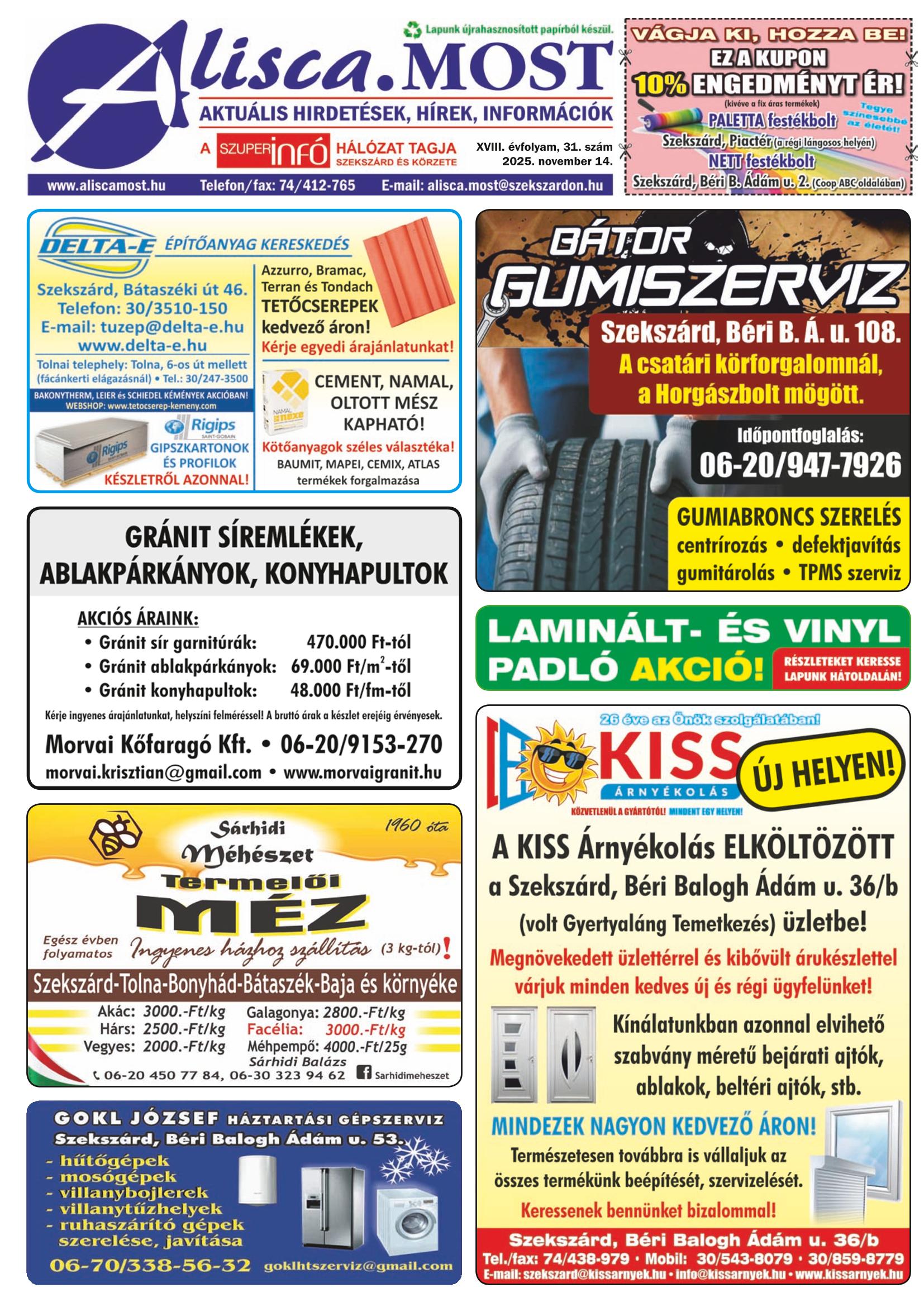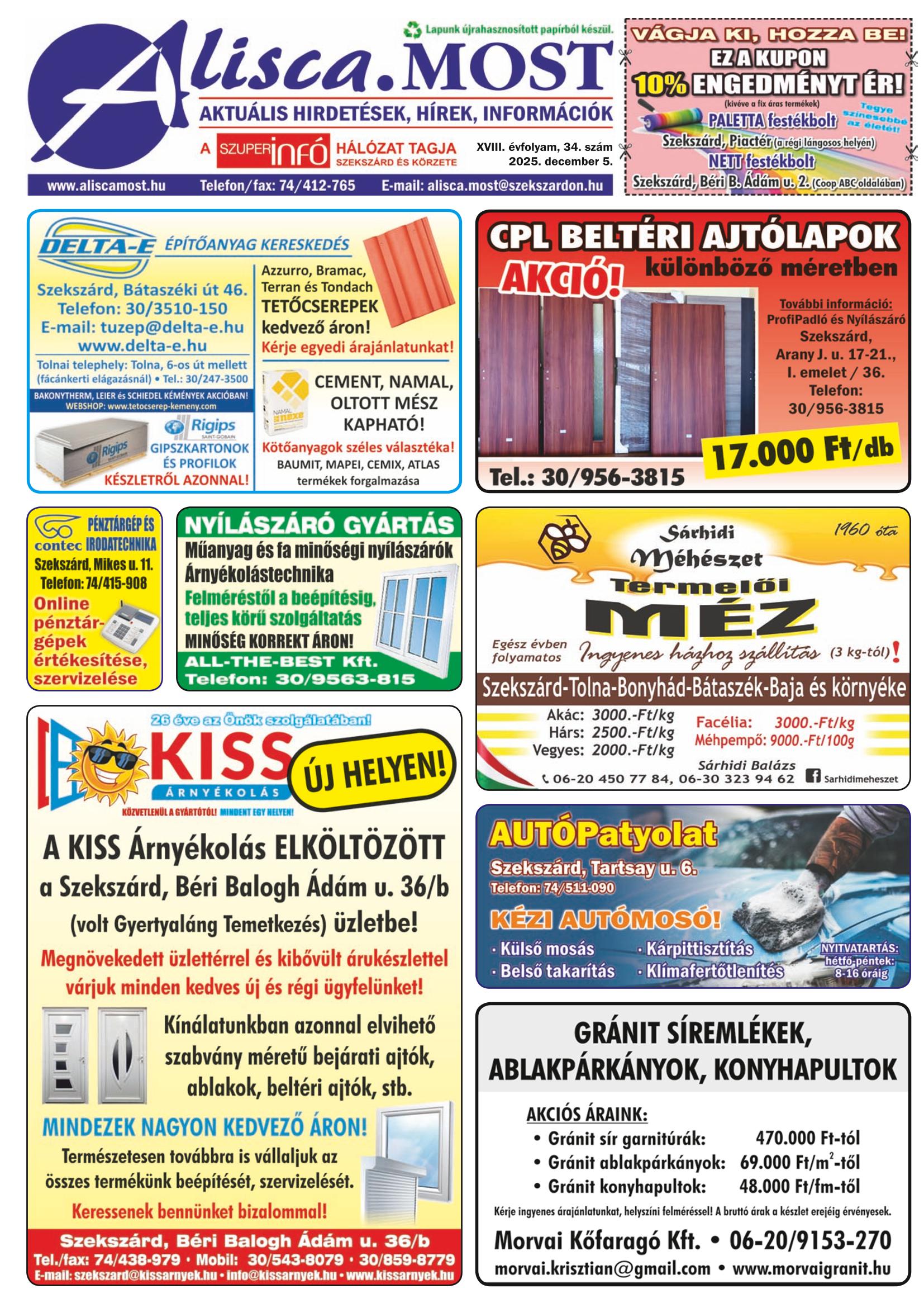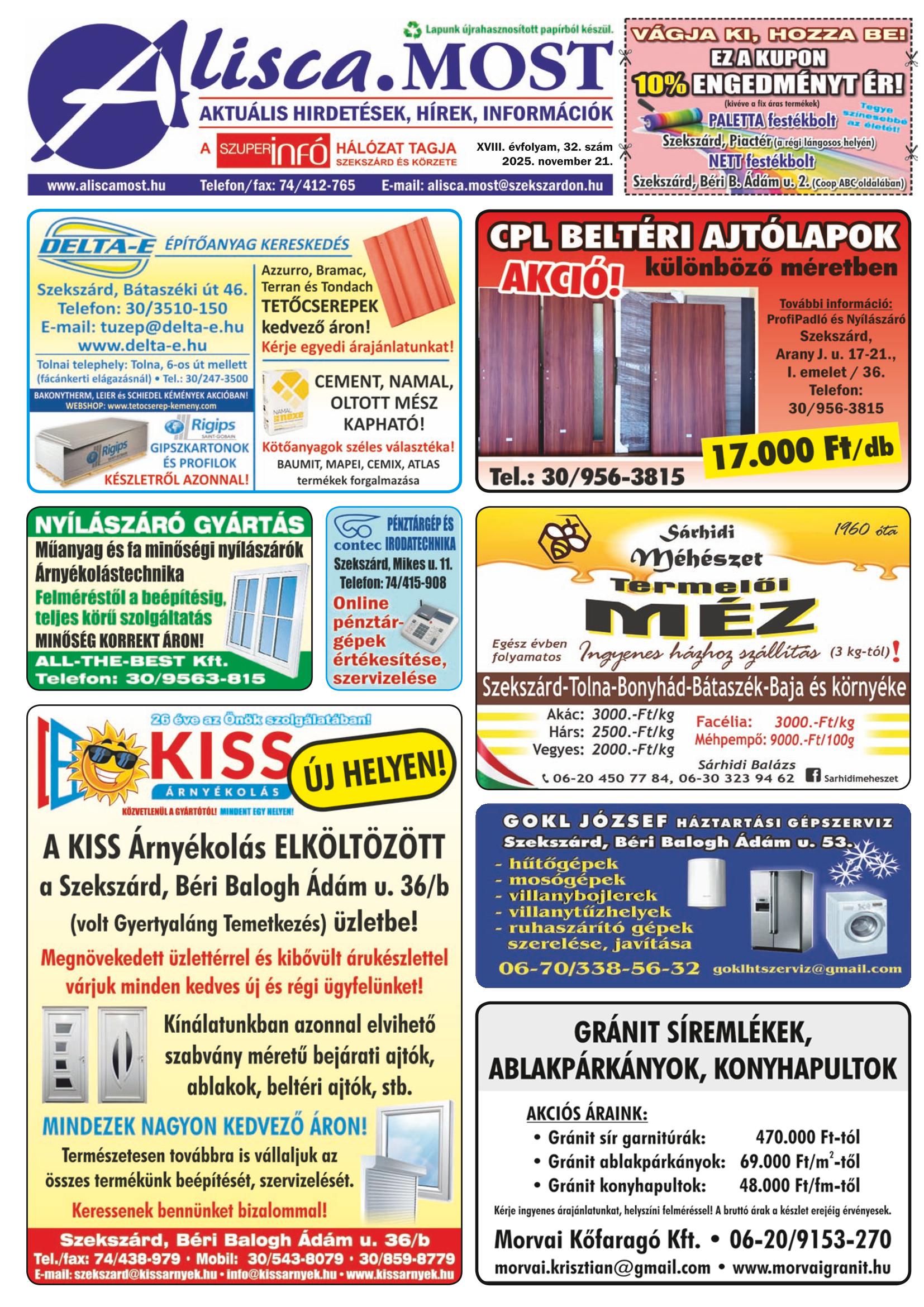 Alisca. Most A Szuperinfó hálózat tagja Szekszárd és körzete Szuperinfó szerkesztőség elérhetőségei
