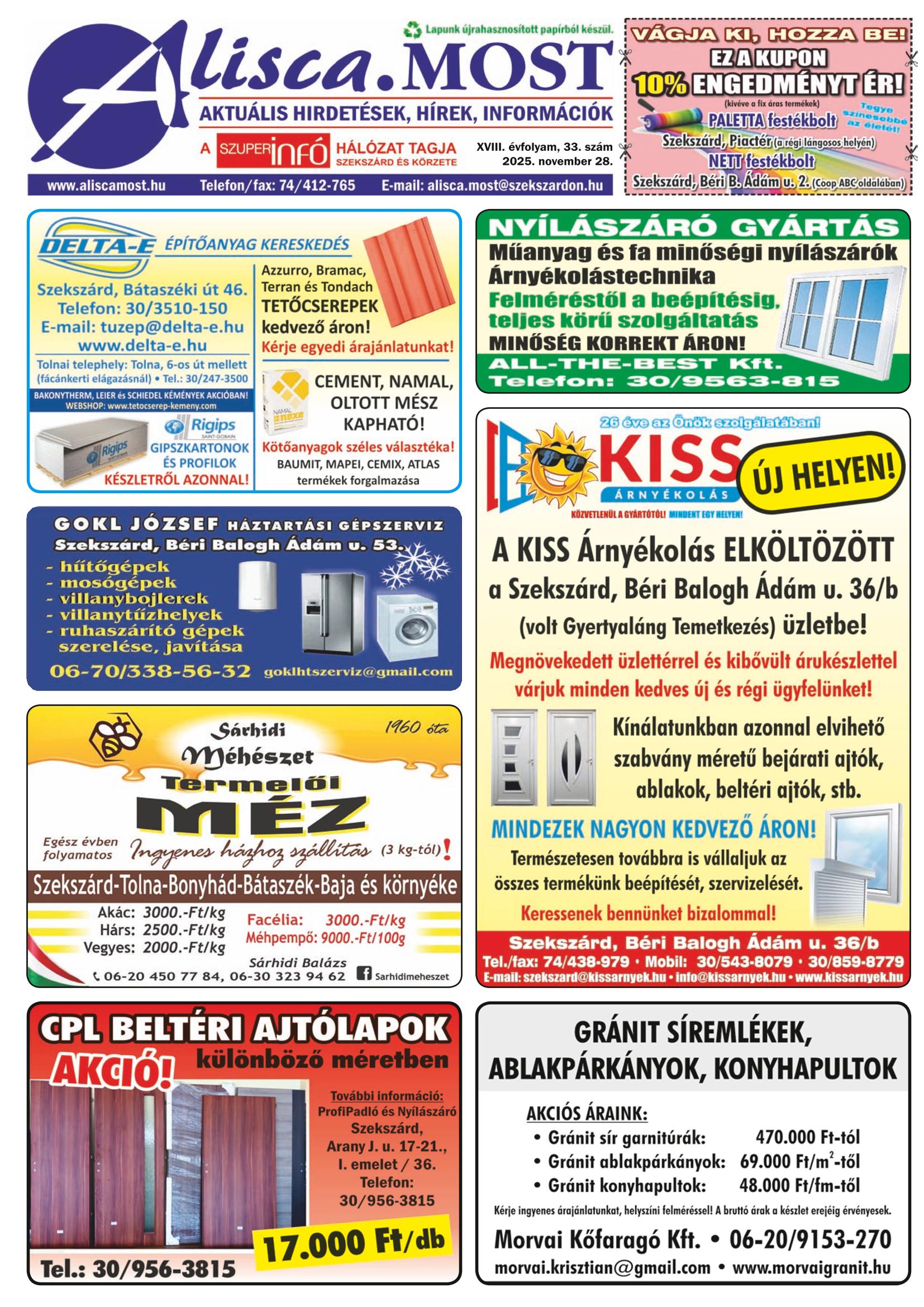 Alisca. Most A Szuperinfó hálózat tagja Szekszárd és körzete Szuperinfó szerkesztőség elérhetőségei