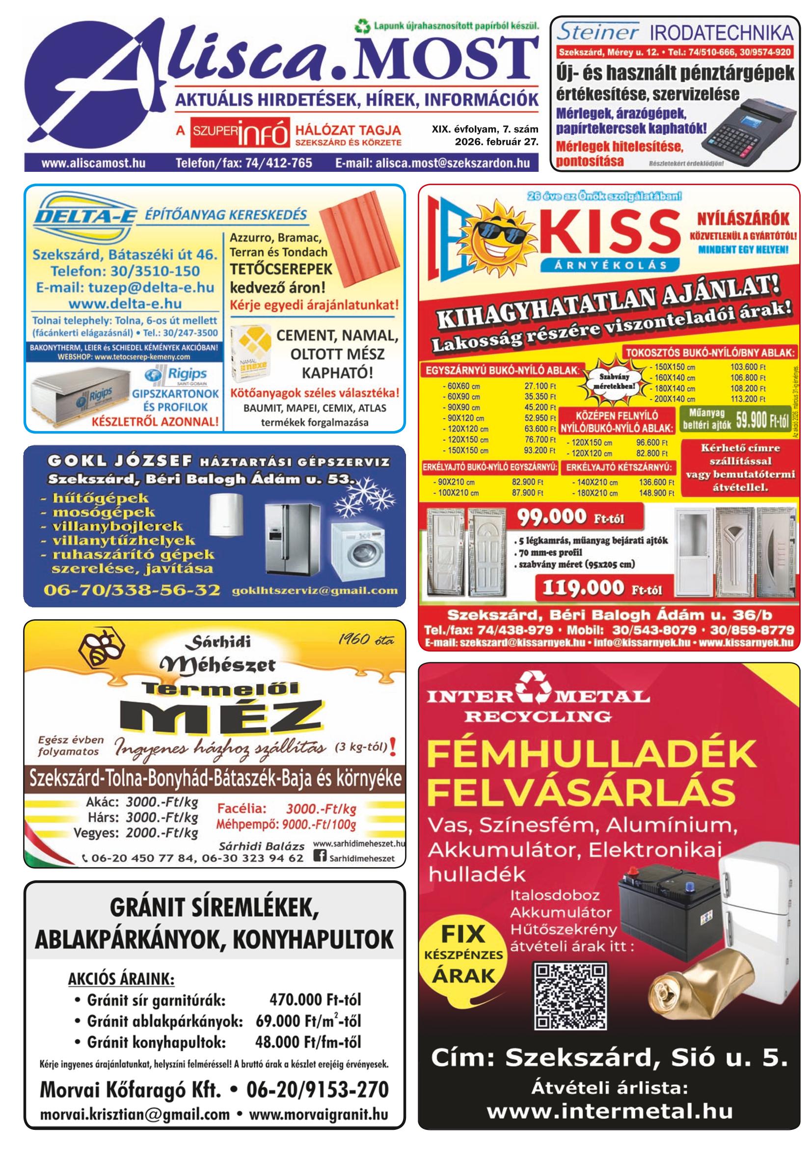 Alisca. Most A Szuperinfó hálózat tagja Szekszárd és körzete Szuperinfó szerkesztőség elérhetőségei