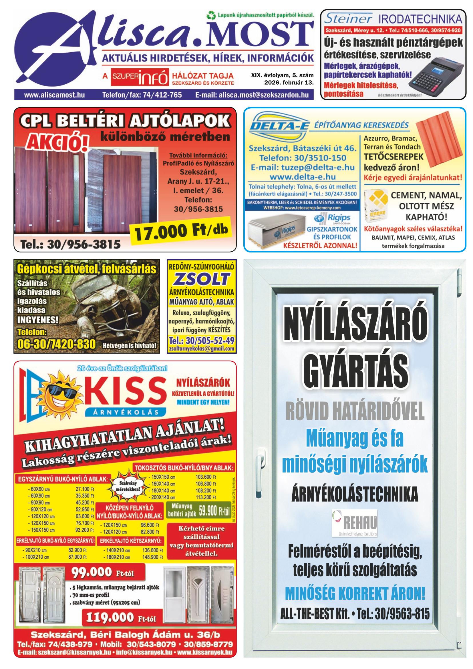 Alisca. Most A Szuperinfó hálózat tagja Szekszárd és körzete Szuperinfó szerkesztőség elérhetőségei