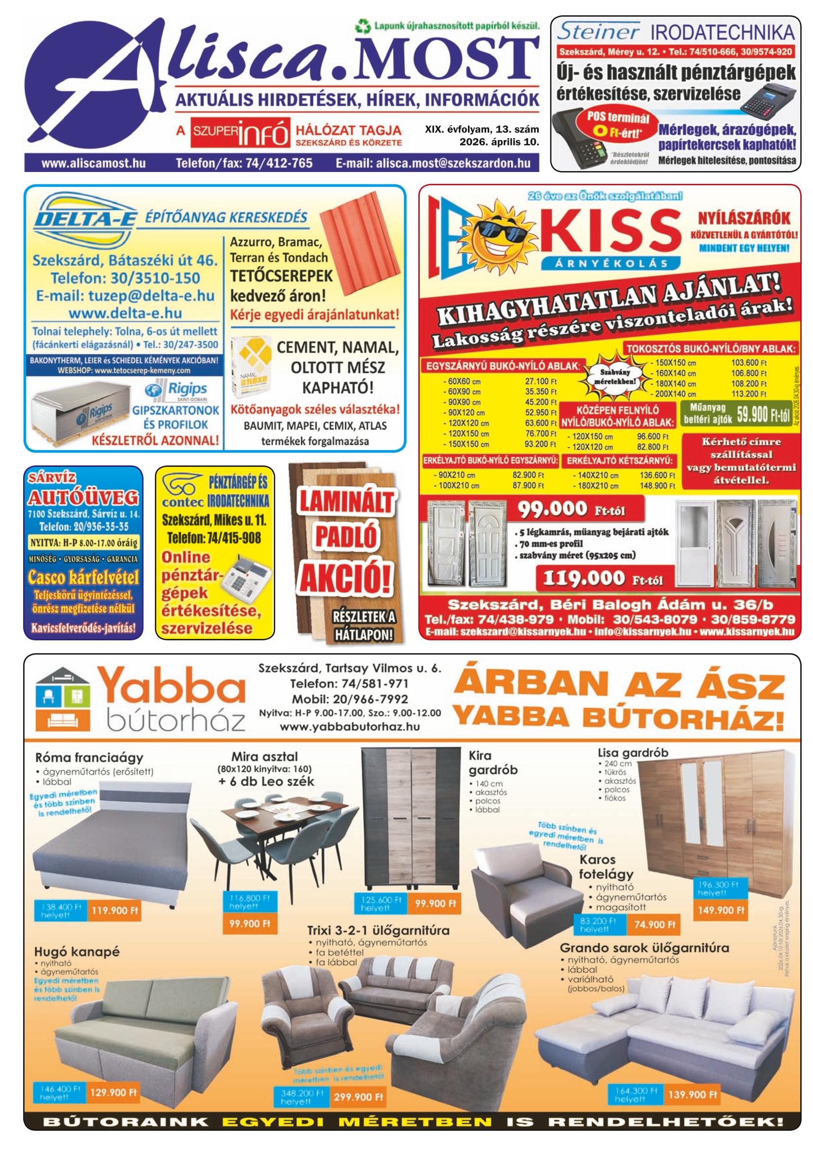 Alisca. Most A Szuperinfó hálózat tagja Szekszárd és körzete Szuperinfó szerkesztőség elérhetőségei