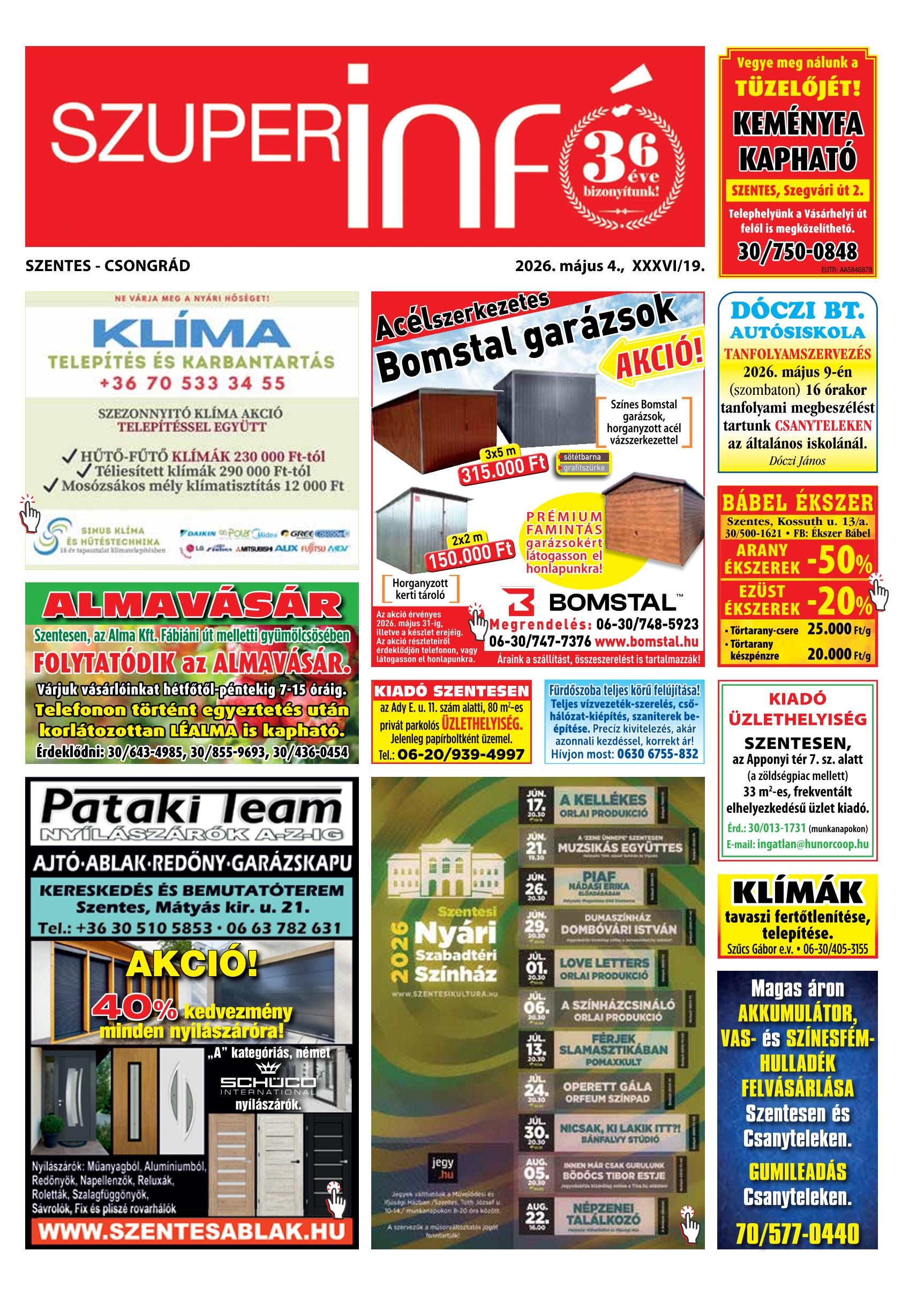 A SZUPERINFÓ online változatát már a hagyományos lap terjesztése előtt olvashatja telefonján vagy számítógépén!
