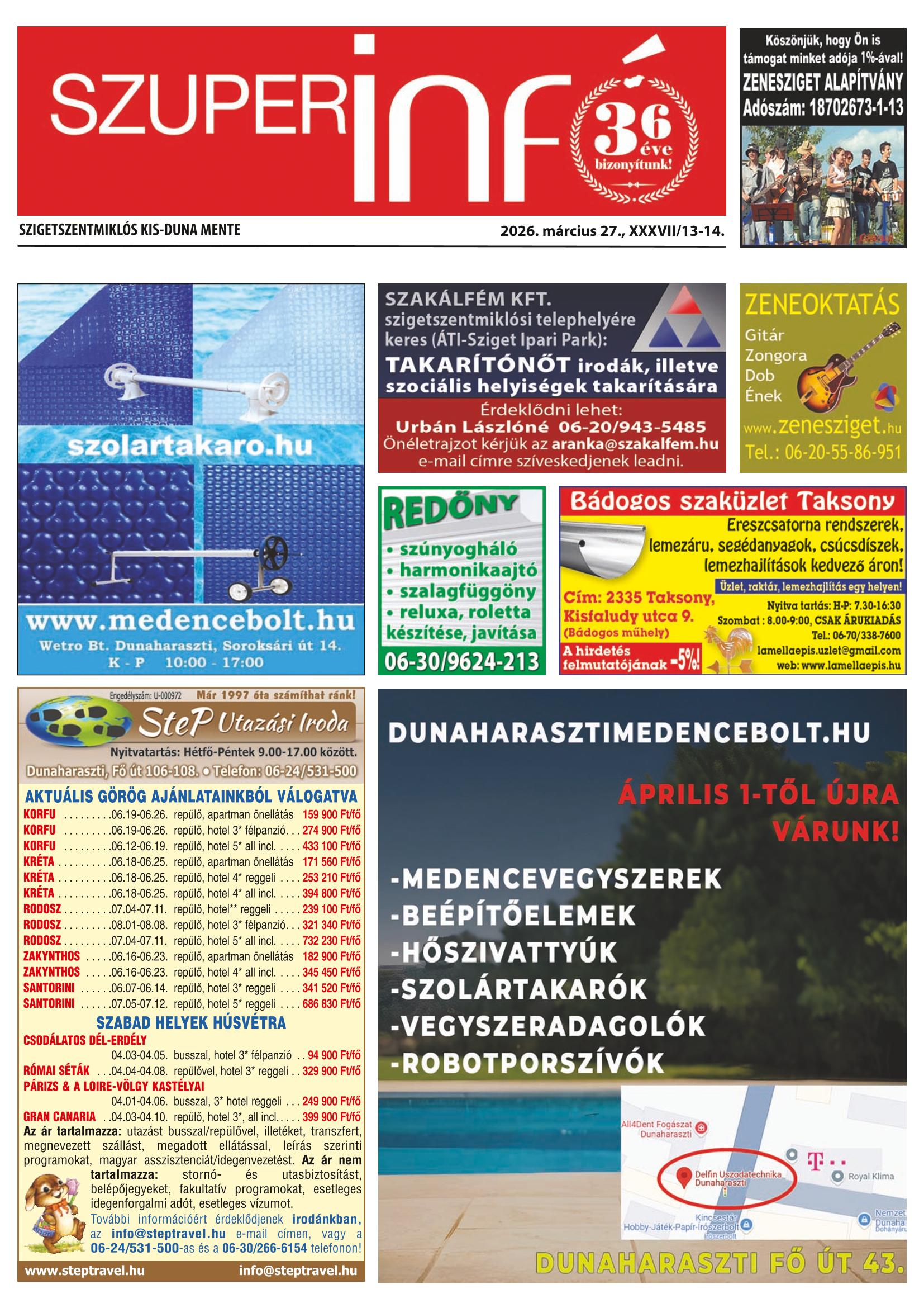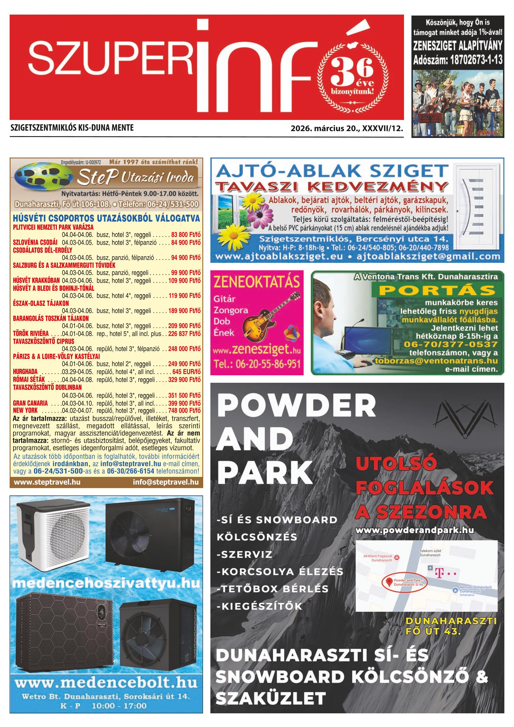 A SZUPERINFÓ online változatát már a hagyományos lap terjesztése előtt olvashatja telefonján vagy számítógépén!