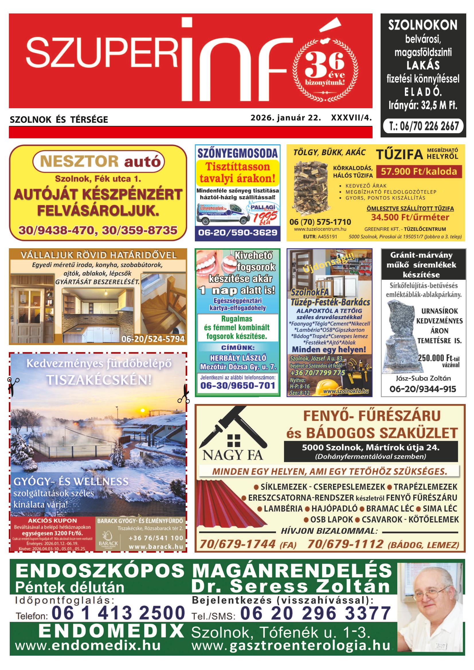A SZUPERINFÓ online változatát már a hagyományos lap terjesztése előtt olvashatja telefonján vagy számítógépén!