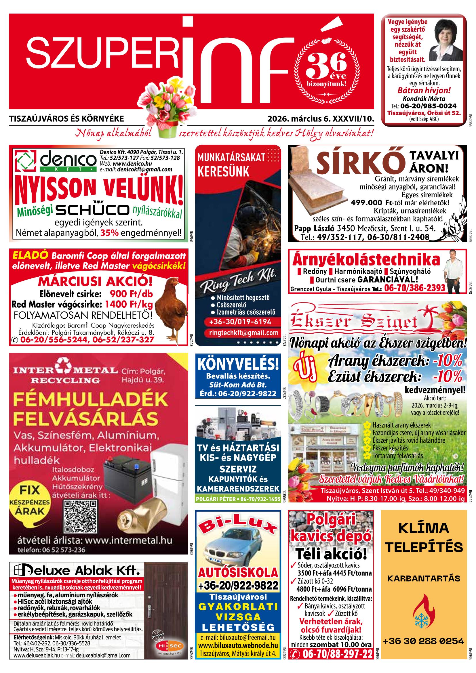 A SZUPERINFÓ online változatát már a hagyományos lap terjesztése előtt olvashatja telefonján vagy számítógépén!