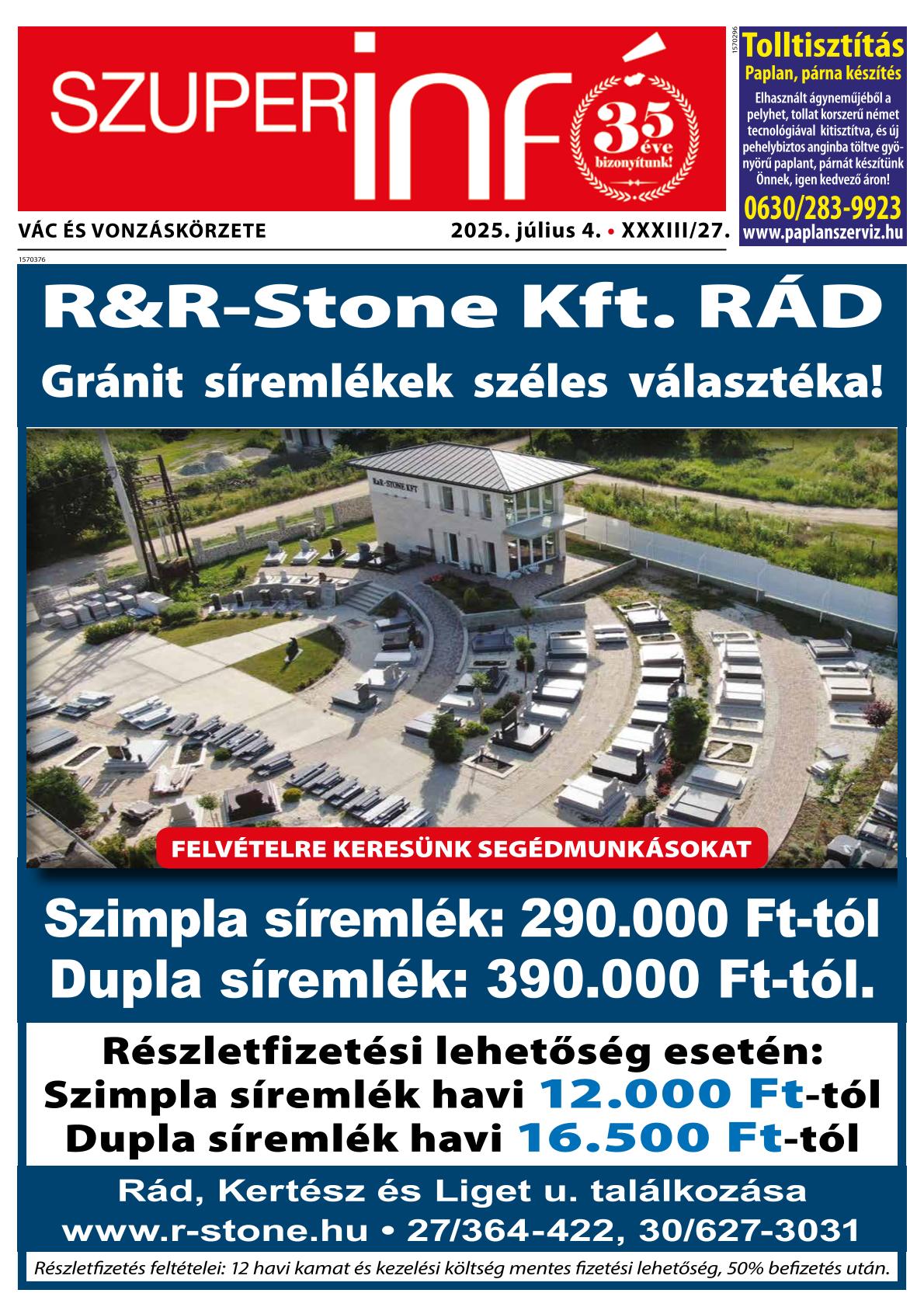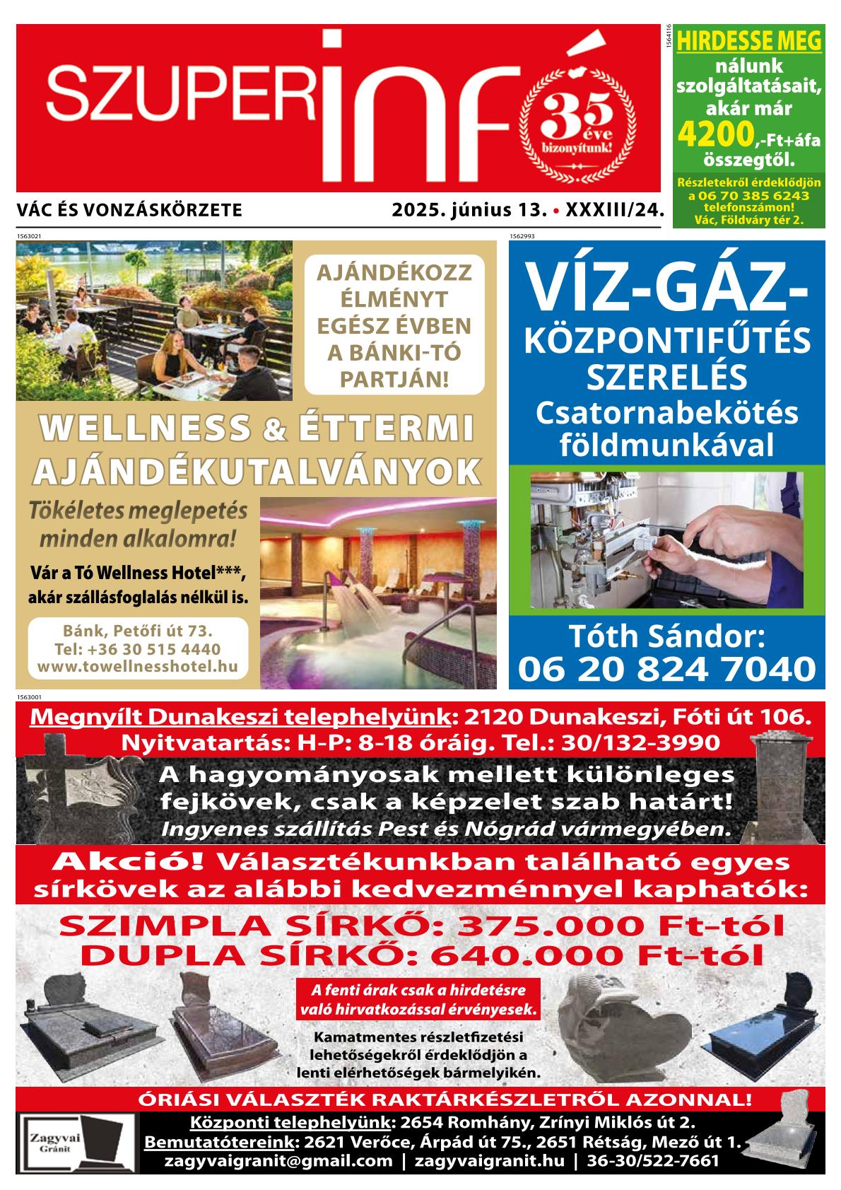 A SZUPERINFÓ online változatát már a hagyományos lap terjesztése előtt olvashatja telefonján vagy számítógépén!